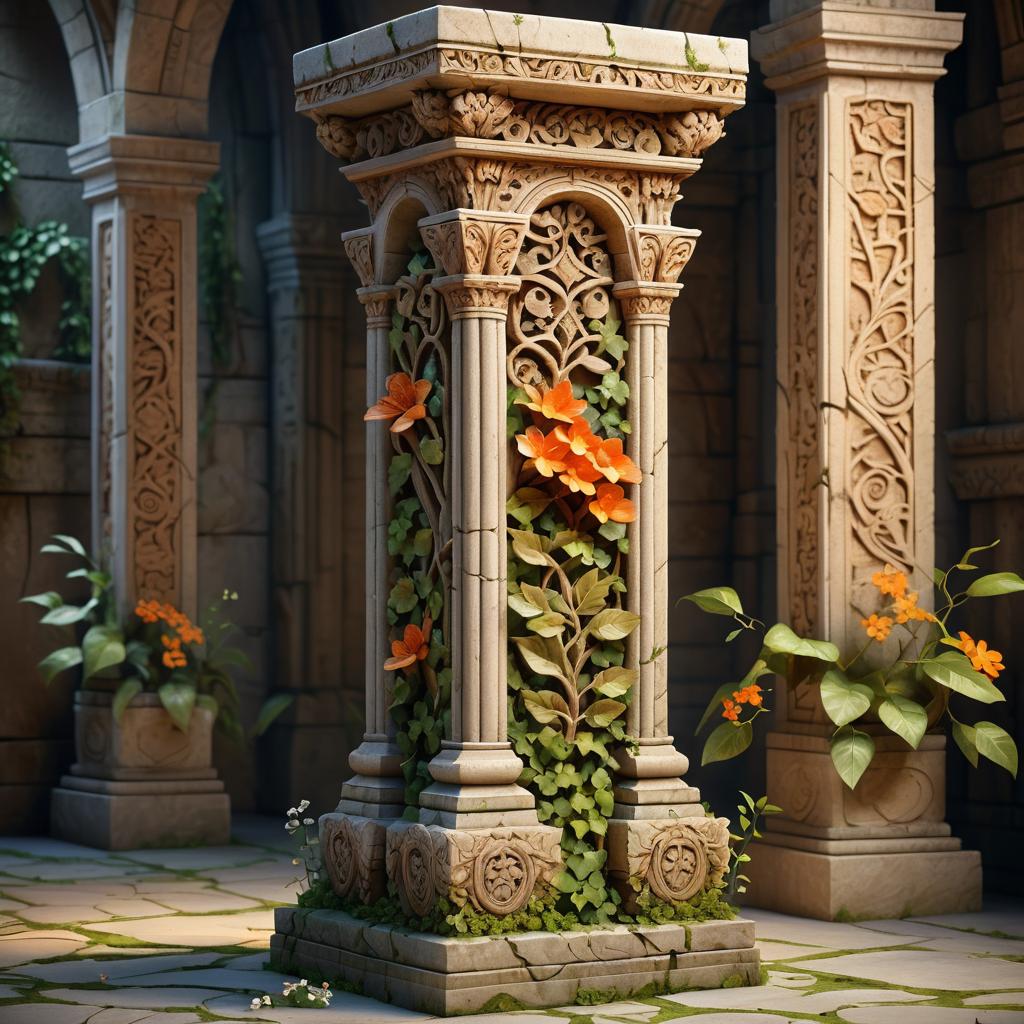 Ornate Stone Pillar with Vines and Flowers