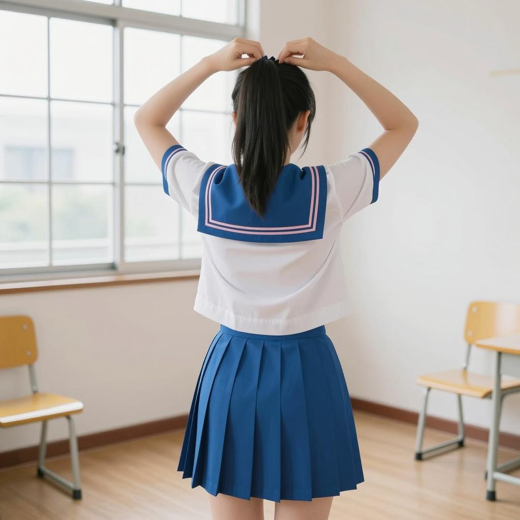 Elegant Asian Schoolgirl in Sailor Uniform