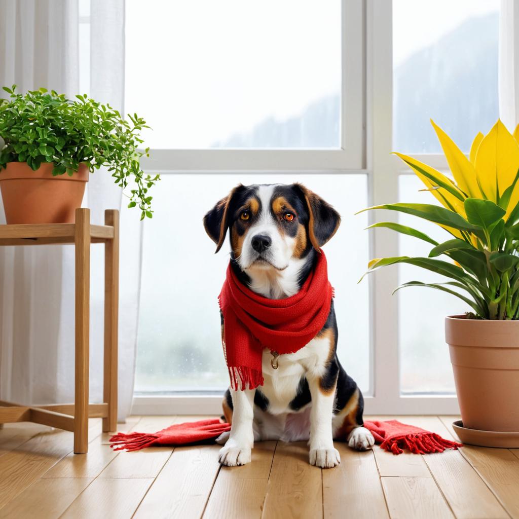 Dog Wearing Red Scarf Indoors