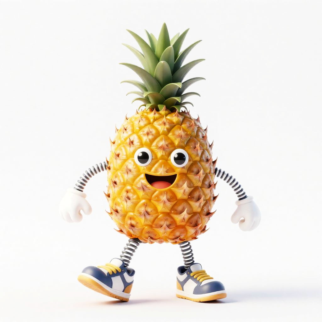 Imagine a gleeful cobalt robot with a smiling face and arms and legs made of interlocking brass gears and copper coils. This lively 3D character is breakdancing energetically while wearing oversized sporty shoes against a clear white backdrop.