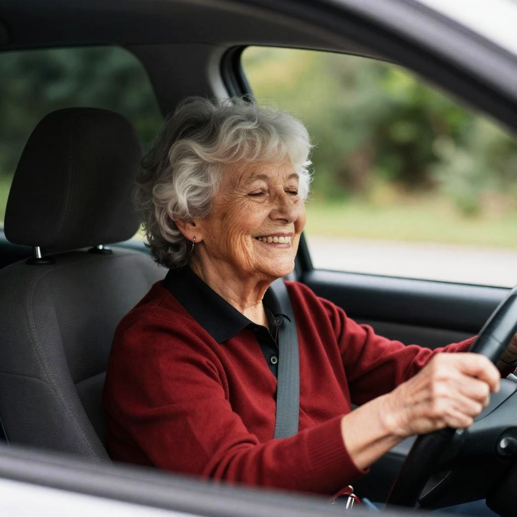 Elderly Woman Smiling While Driving