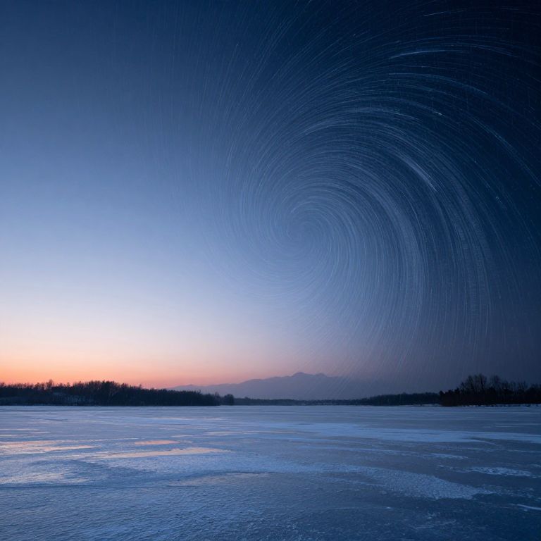 The sky is split into two halves: one half frozen in perpetual dawn, the other whirling endlessly in midnight rain made of light.