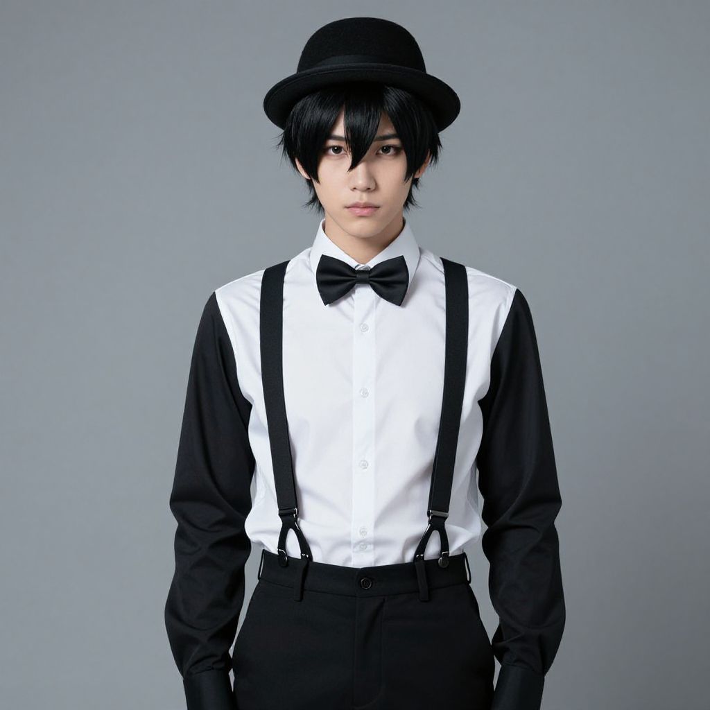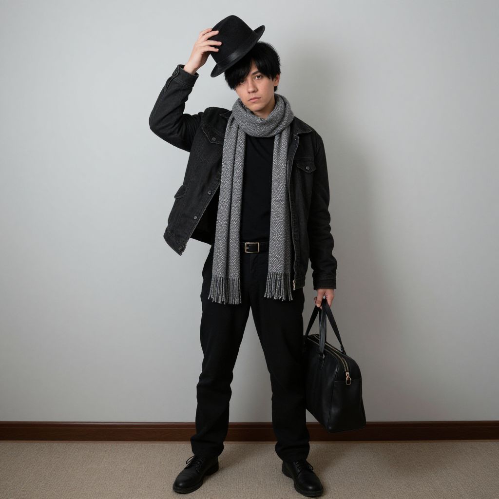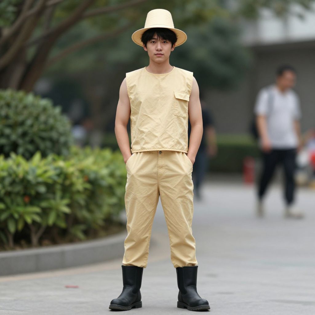 "that show costume, 1boy, solo, male focus, hat, standing, indoors, full body, boots Realistic photo of casual sexy person with pretty face"