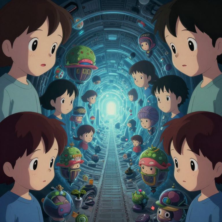Auto Mode portal to another dimension inside there is floating worlds, floating worlds, beautiful floating takshi murakami faces, tunnels, portal, style of baskiat,