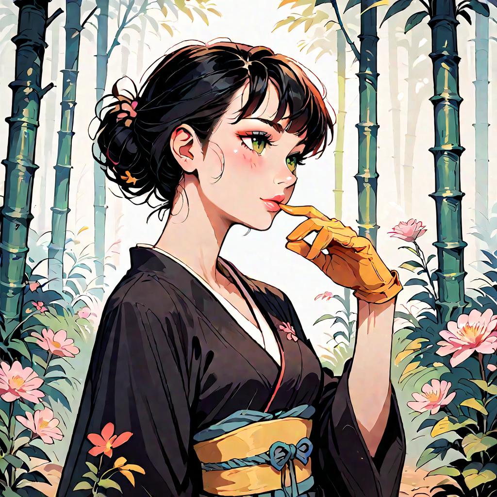 Minimalist Fashion Illustration with Kimono