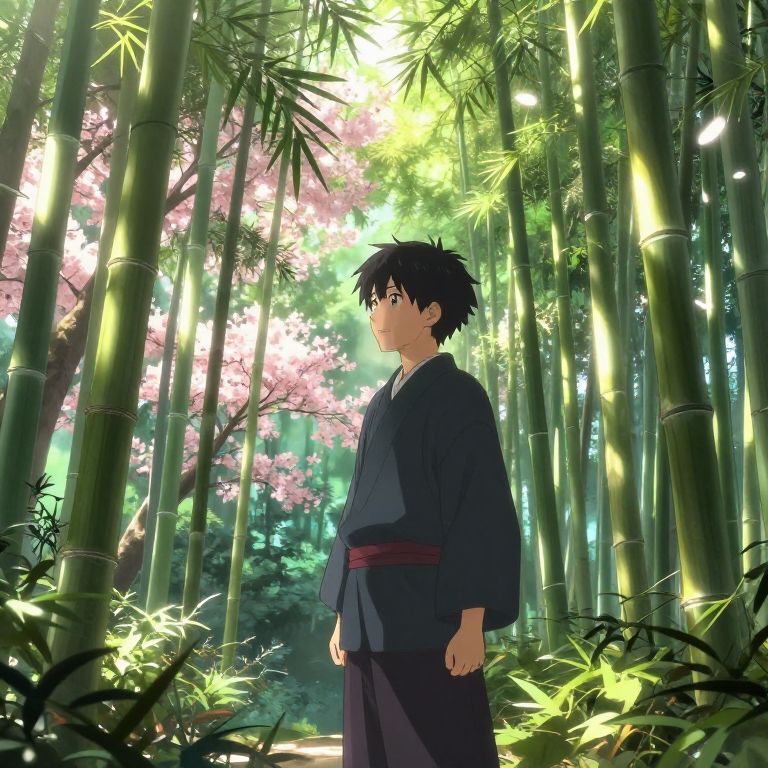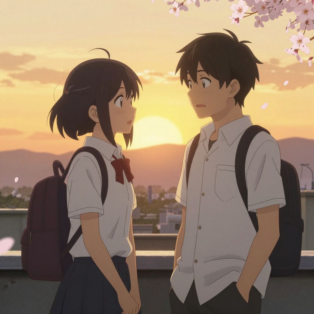 Anime couple prompt: A quiet anime couple walking through a forest at dusk, dressed in traditional Japanese attire, sharing a blanket, trees glowing softly, misty ambiance, emotional tone, highly detailed anime rendering, soft focus on faces.