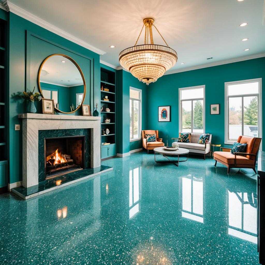 Art Deco Living Room with Teal Terrazzo Floor
