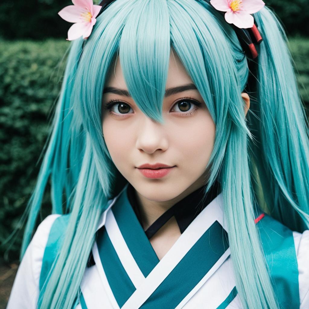 Miku Senbonzakura Cosplay, a close up of a person with long hair wearing a costume