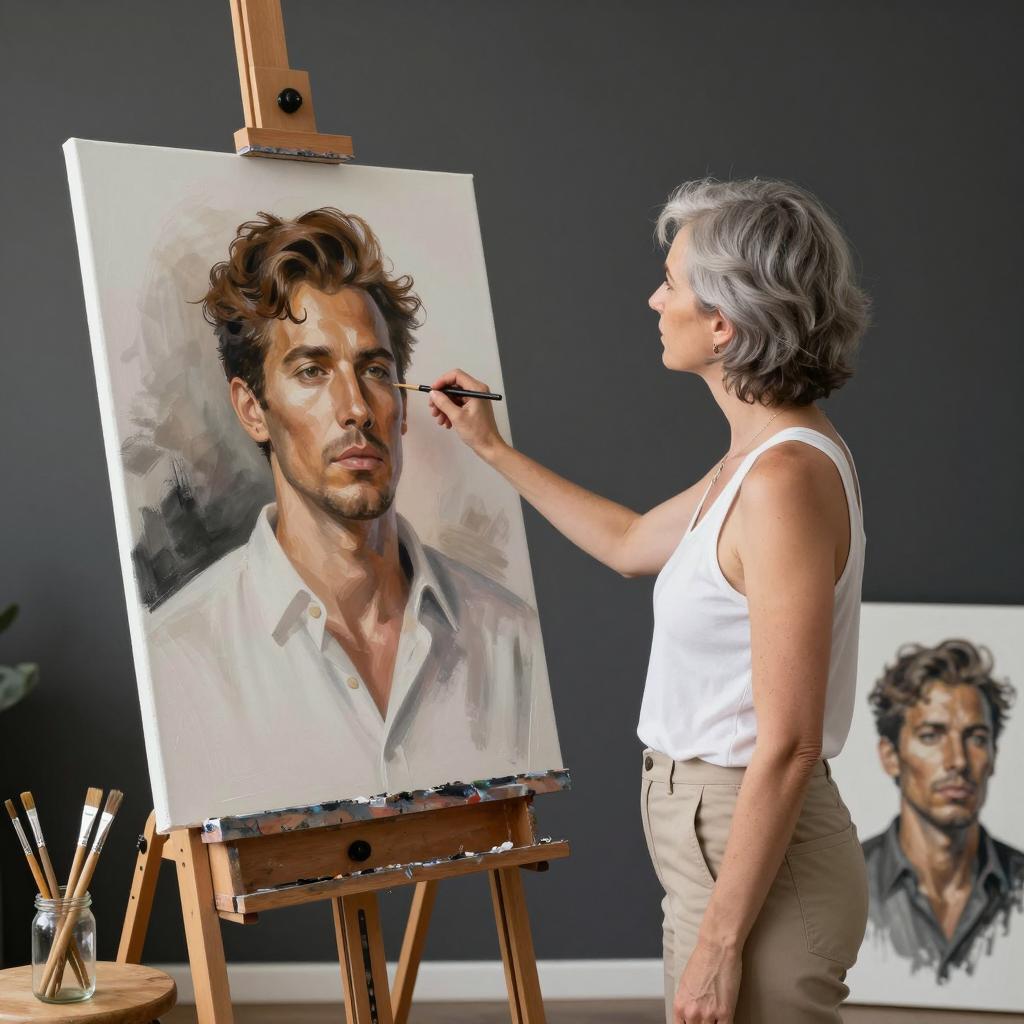 Intense Gaze in a Painter's Studio
