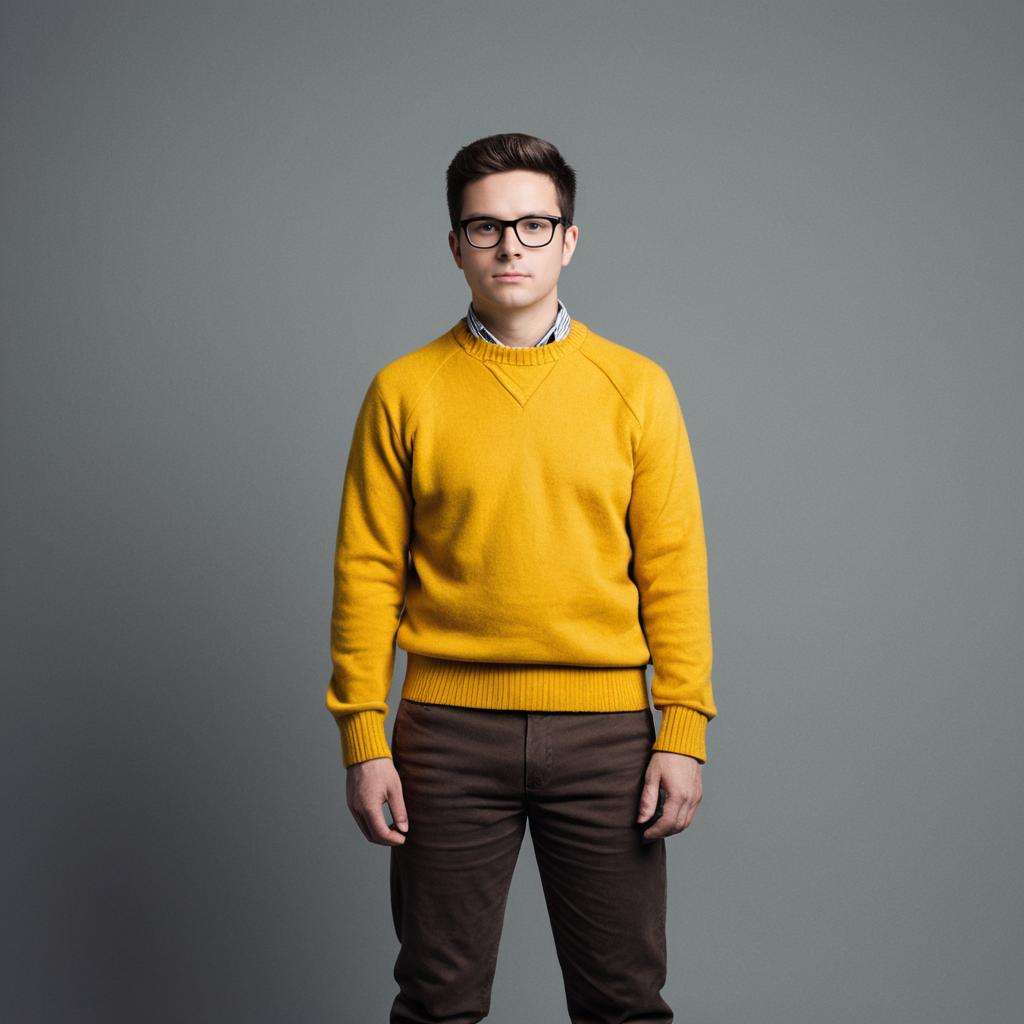 Young Man in Yellow Sweater and Glasses