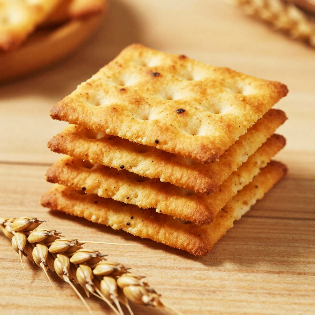 Stack of Seed-Crusted Crackers with Wheat Stalk