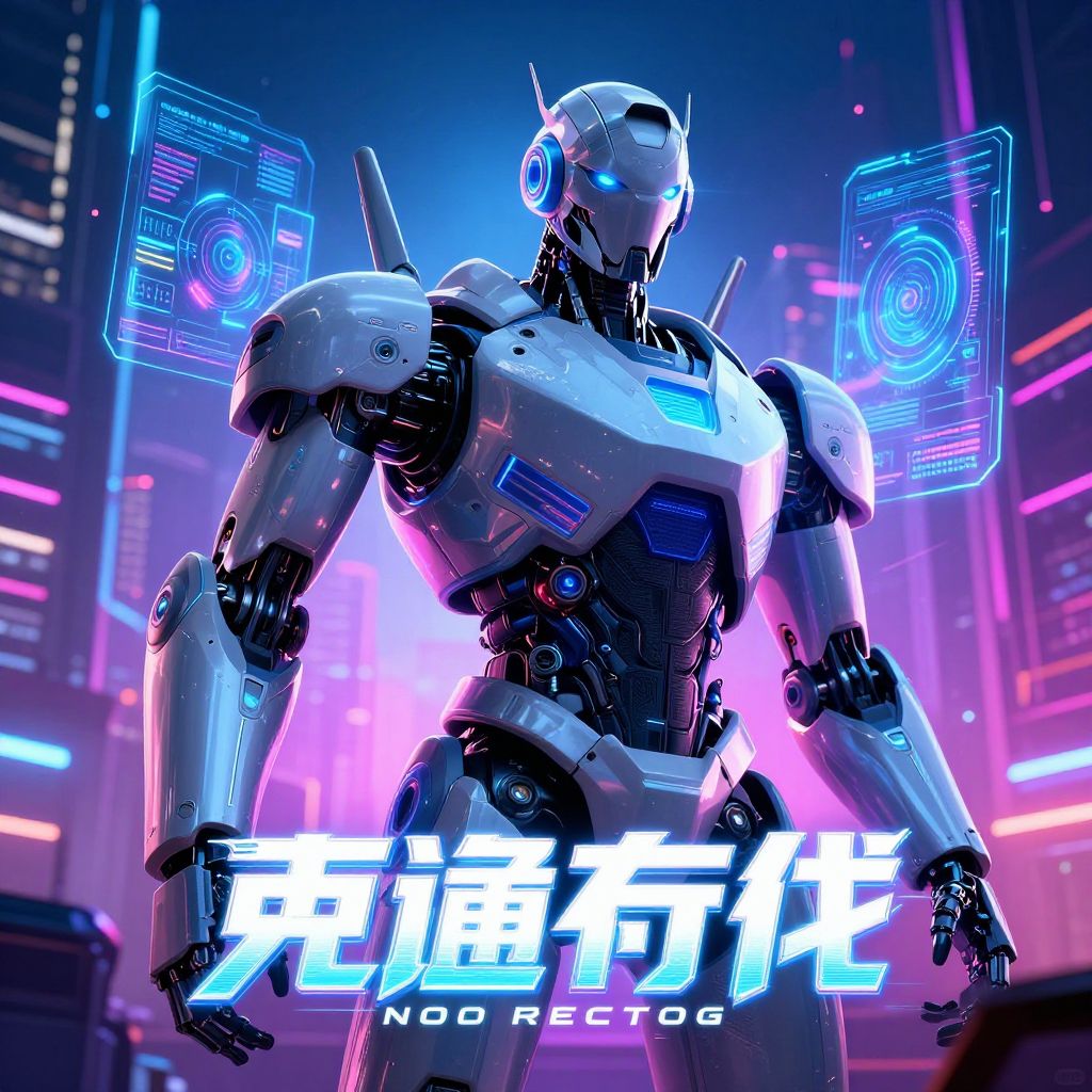 Movie poster AI design featuring futuristic robots and holographic elements, cyberpunk cityscape background, vibrant neon colors and sleek digital typography, cinematic lighting, highly detailed and dynamic composition, ultra-realistic style.
