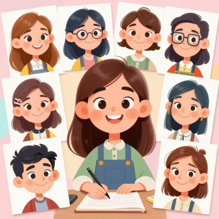 Cartoon caricature maker surrounded by floating caricature sketches of diverse characters, each with comically exaggerated features, bright pastel background, digital painting with smooth textures and playful vibe, focusing on creativity and imagination