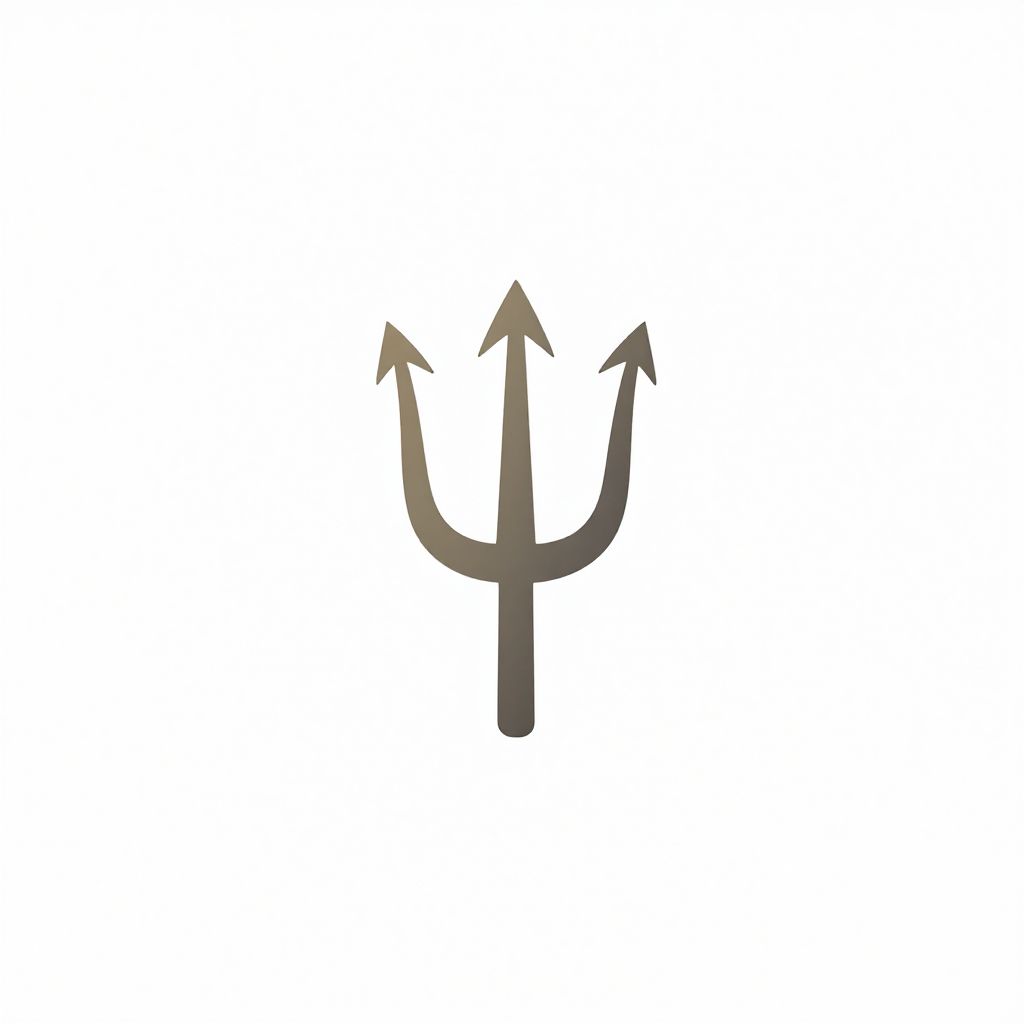 A digital illustration of a black, three-pronged trident centered on a white background. Each prong is pointed upwards, and the trident has a straight, cylindrical handle. The image is simple, with bold, clean lines and a minimalistic style, emphasizing the trident's shape and form. The trident is uniformly black, contrasting sharply with the white background, creating a stark, clear visual. The overall composition is symmetrical and uncluttered, focusing attention on the trident itself.