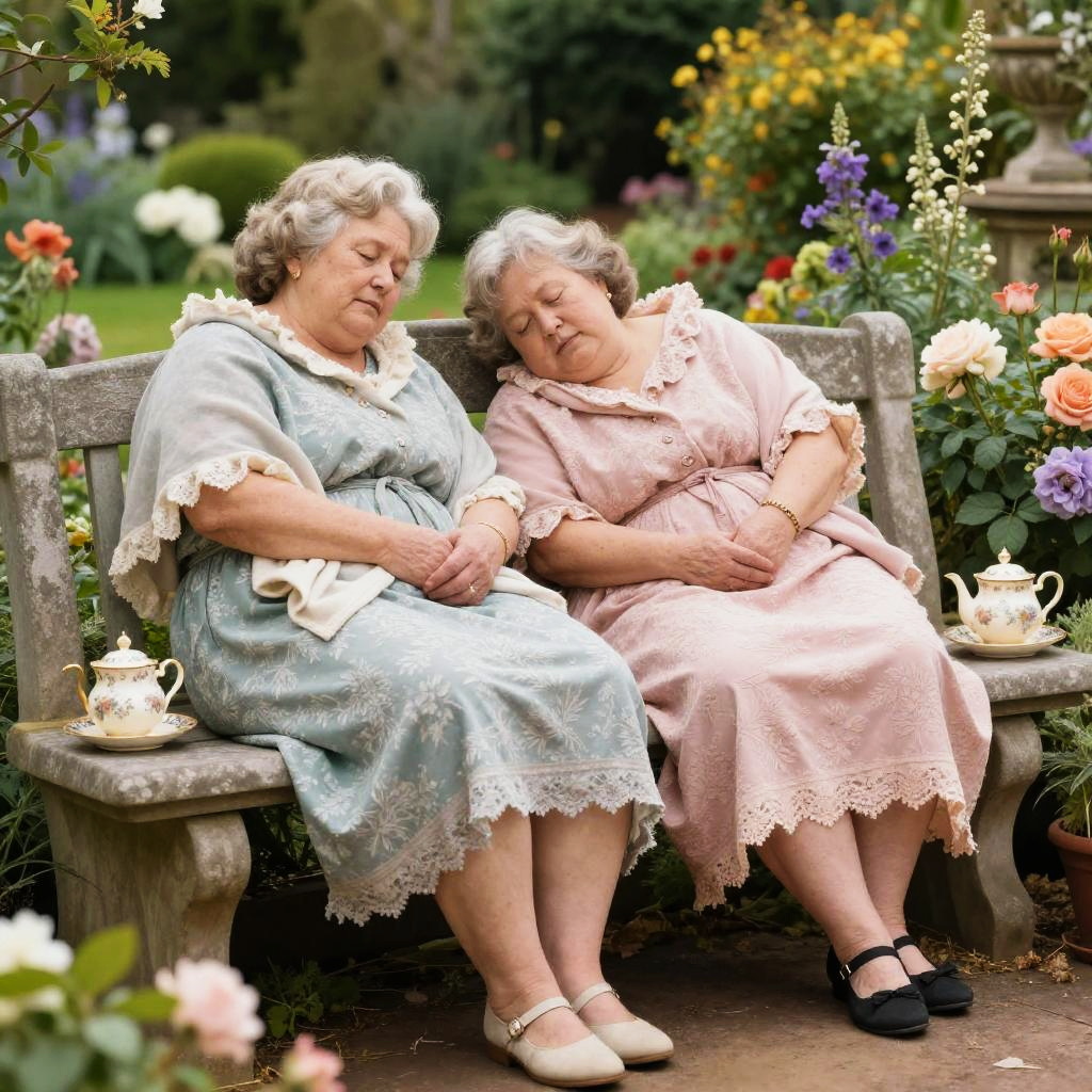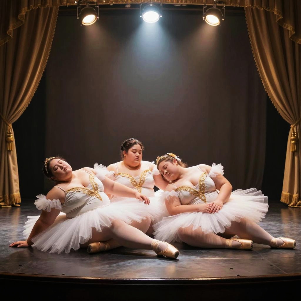 Round-faced chefs with tall hats, lounging their strongfat bodies and sleeping cuddled in busy kitchen with hanging pots and sizzling pans, hyper-detailed, surreal