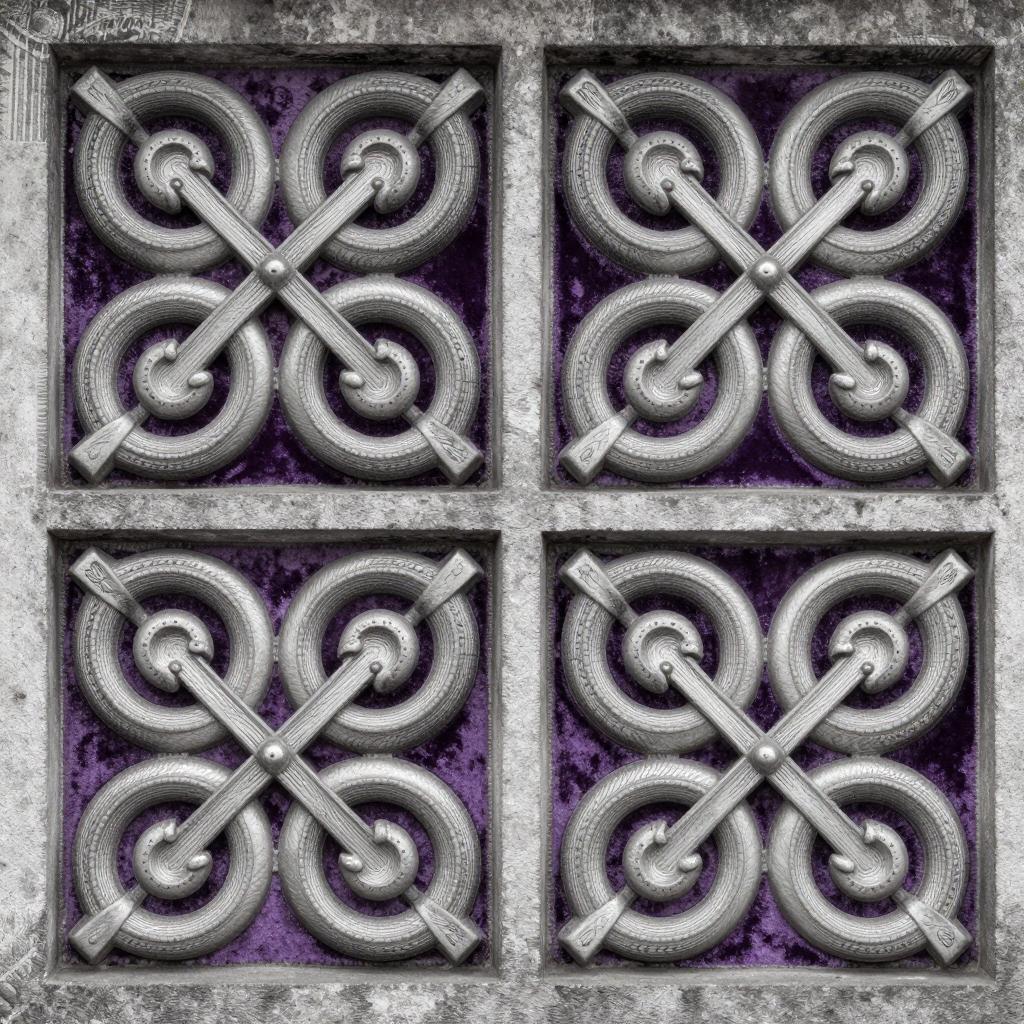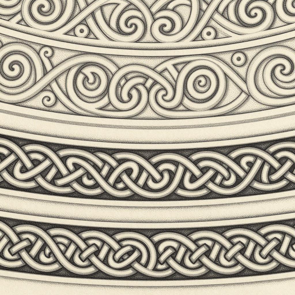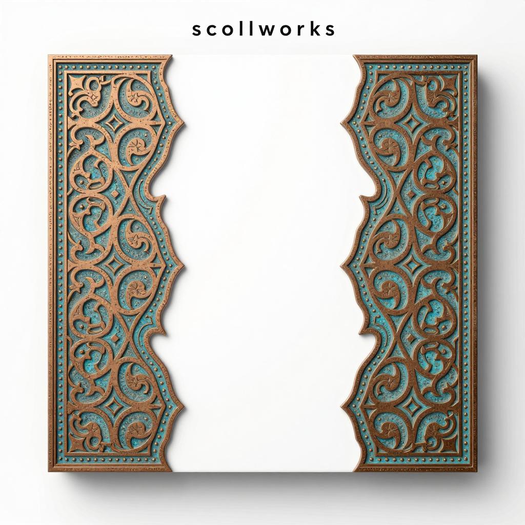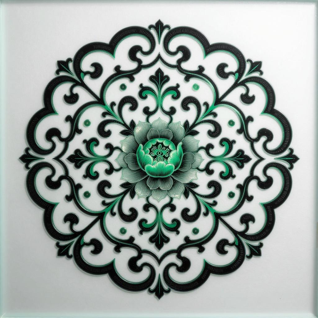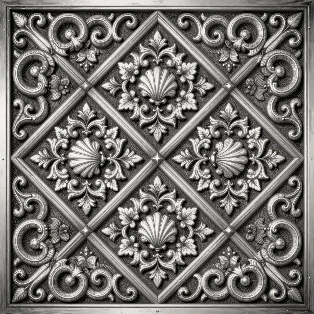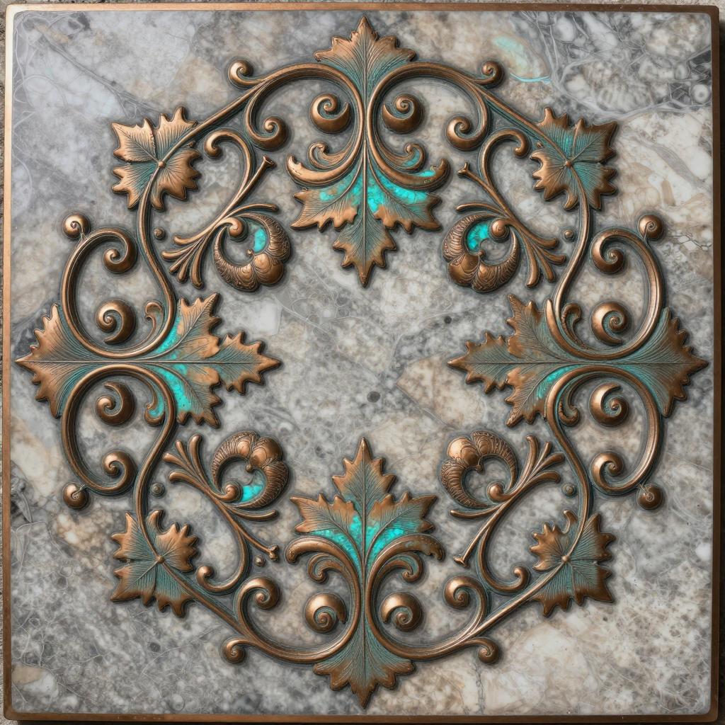 Scrollworks pattern featuring dense Baroque acanthus leaves and curling vines in deep burgundy scrollwork on muted taupe arranged as central circular medallion of scrollwork on a plain field on ceiling or dome decoration in an old palace rendered as watercolor wash background with sharp line-art scrolls, ultra-detailed, sharp ornamental design, high resolution, intricate decorative pattern art