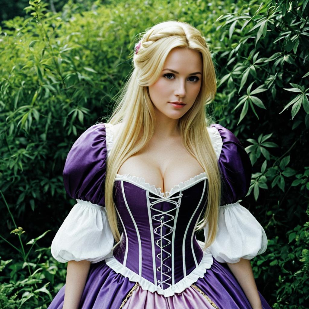 Woman in Purple and Gold Fantasy Dress in Forest
