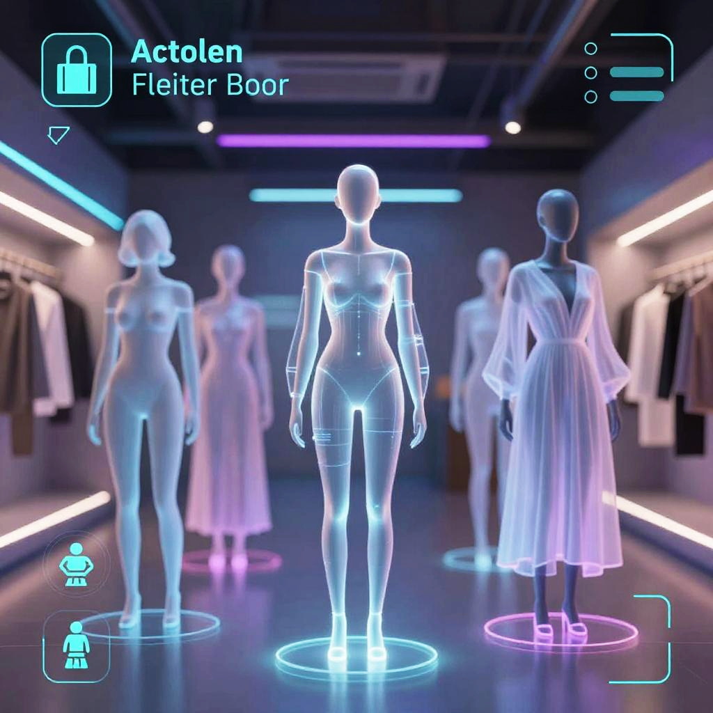 See through clothes filter online, a futuristic digital interface displaying augmented reality fashion try-on, holographic models wearing translucent garments with glowing effects, sleek UI elements, vibrant neon colors, high-tech virtual shopping environment