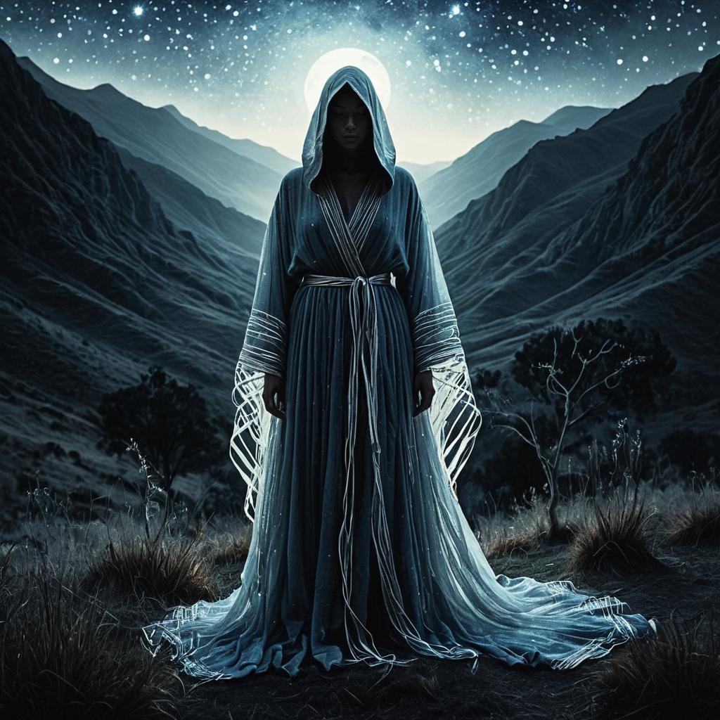 High quality, 8K Ultra HD. A beautiful double exposure that combines a goddess silhouette with aurora borealis over snowy hills. The aurora borealis over snowy hills should serve as the underlying backdrop with its details incorporated into the goddess. Crisp lines. The background is monochrome, sharp focus, double exposure, awesome full color.
