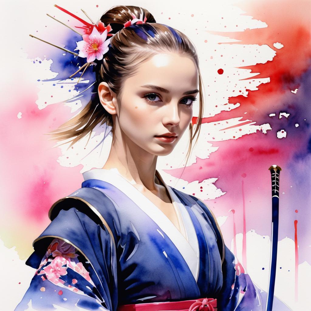 Anime Natalie Portman Ballet Samurai Watercolor Portrait