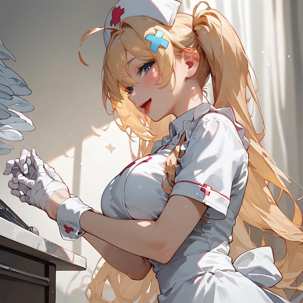 Anime Nurse with Long Blonde Hair and Bandaged Arm