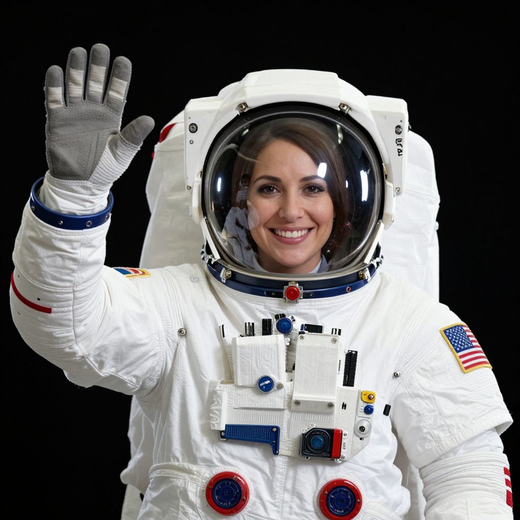 Smiling Female Astronaut in NASA Suit