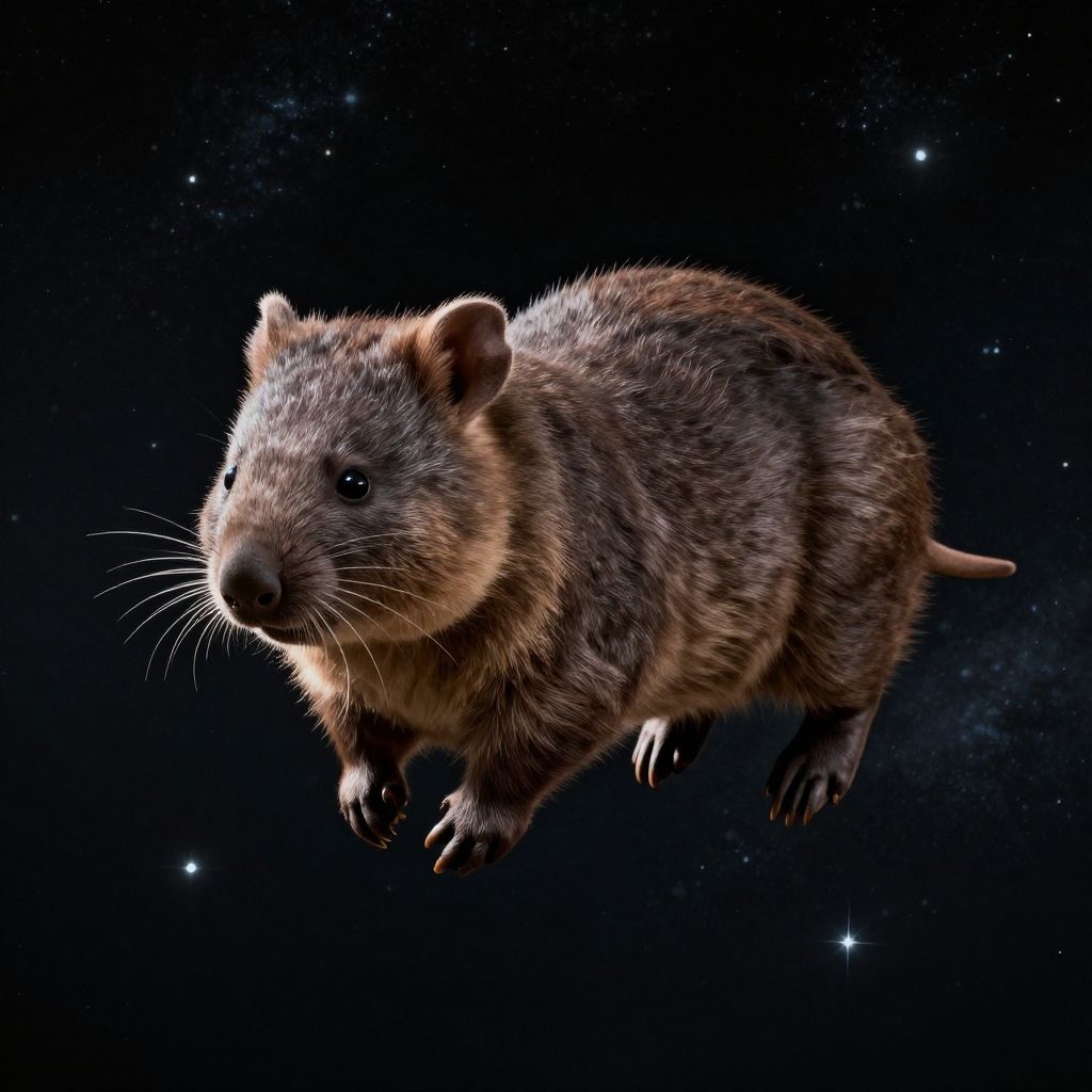 Weightless Wombat Floating in Space