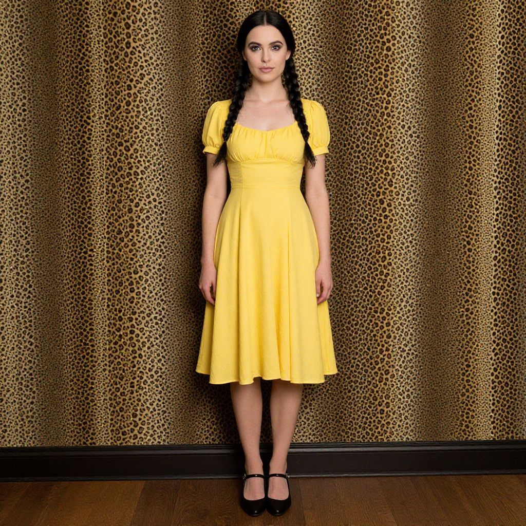Yellow Dress with Leopard Print Wall
