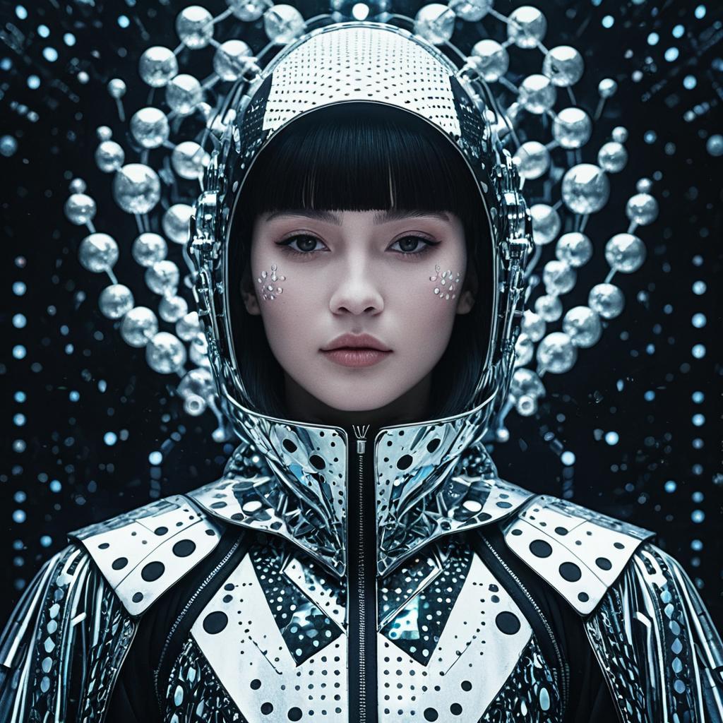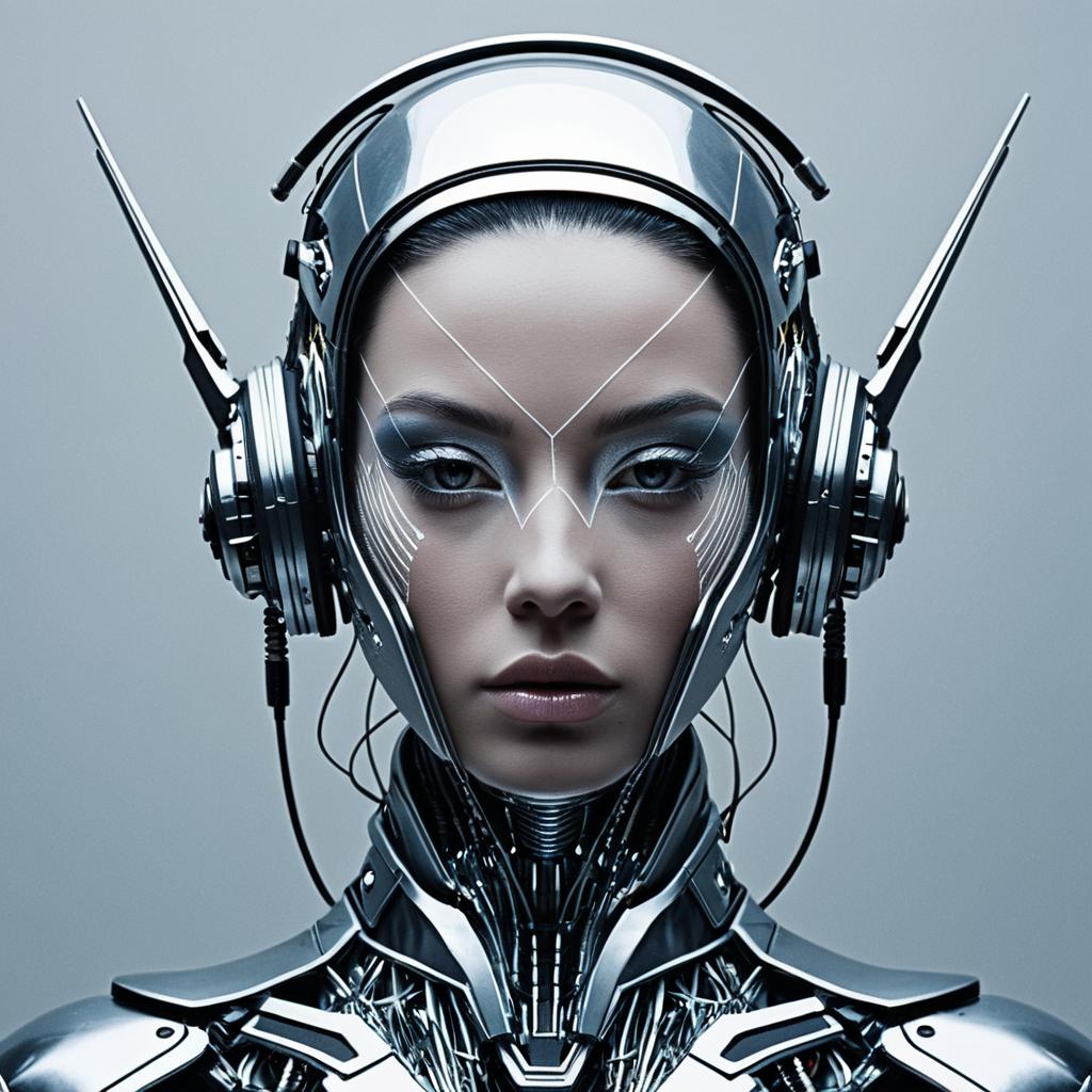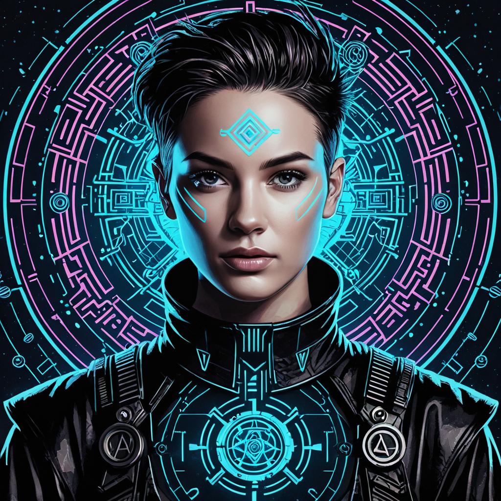 Digital surrealism Create a portrait of a non-binary cyborg dancer that embodies cybernetic non-binary beauty, technology, and futurism, while pushing the boundaries of traditional aesthetics. Incorporate elements such as neon tattoos, digital rain. Draw inspiration from Katsuhiro Otomo, Syd Mead, Masamune Shirow.