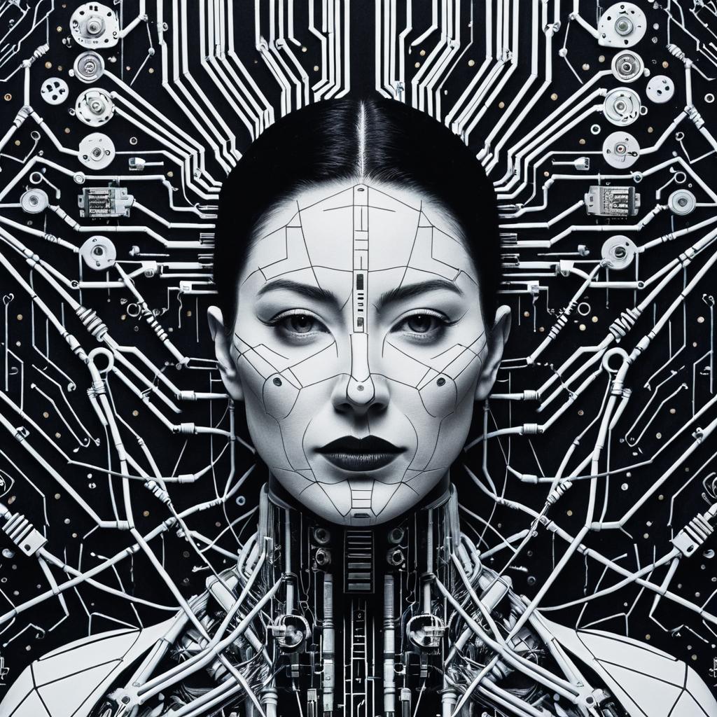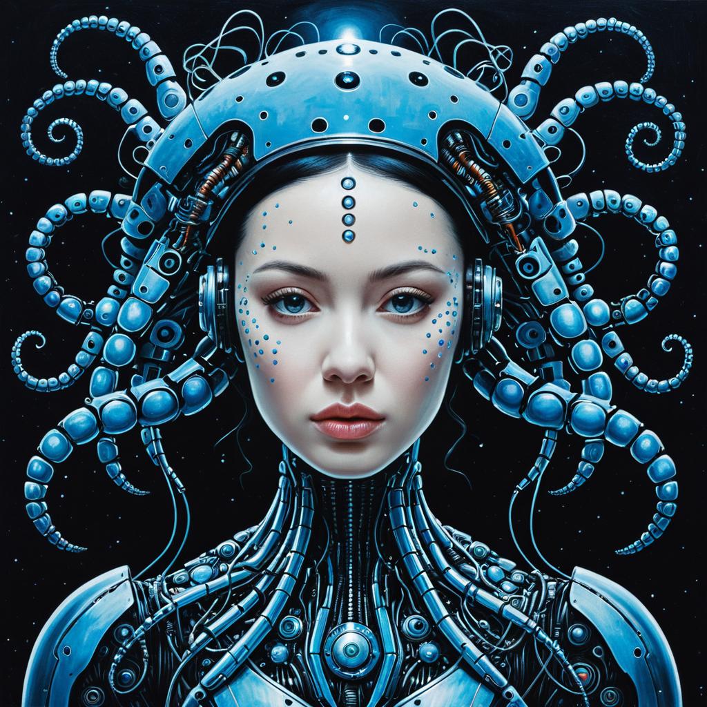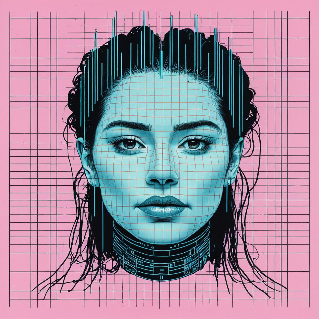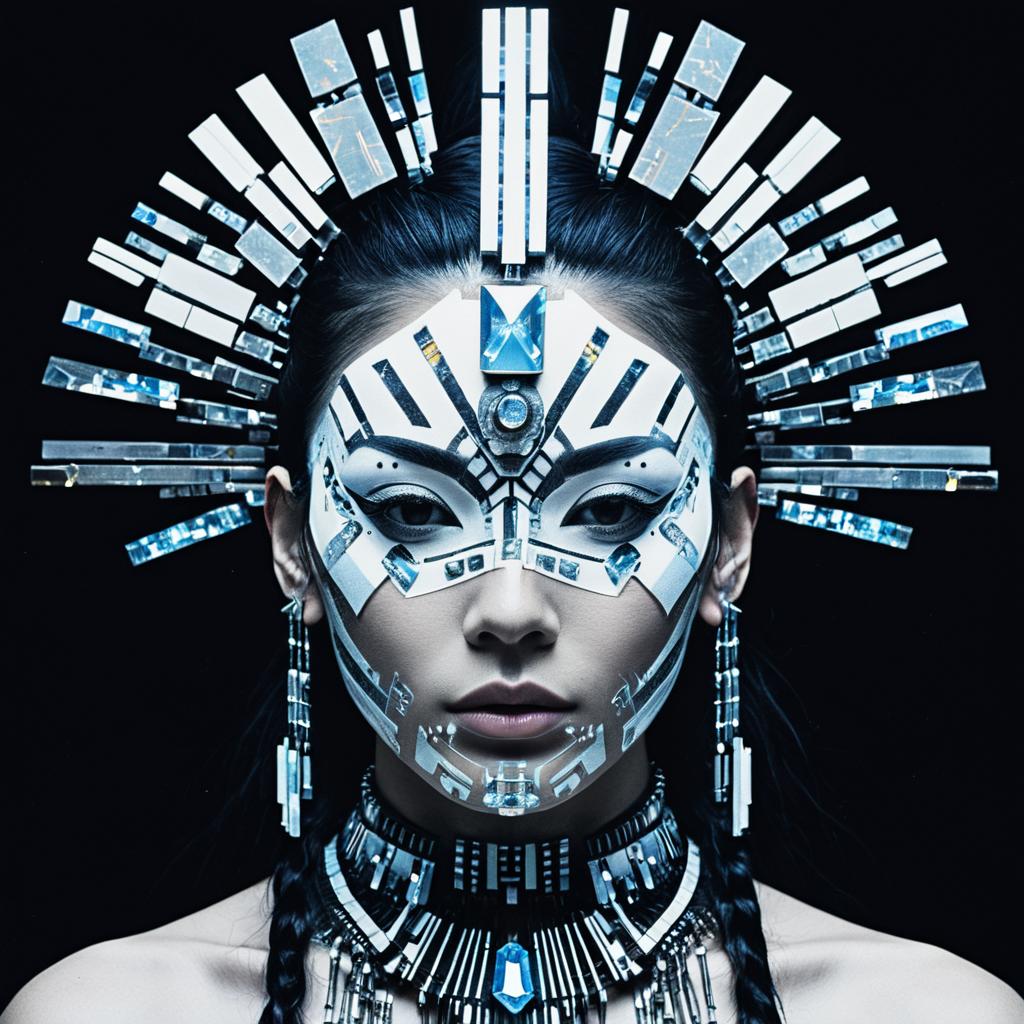Digital surrealism Create a portrait of a non-binary cyborg dancer that embodies cybernetic non-binary beauty, technology, and futurism, while pushing the boundaries of traditional aesthetics. Incorporate elements such as neon tattoos, digital rain. Draw inspiration from Katsuhiro Otomo, Syd Mead, Masamune Shirow.