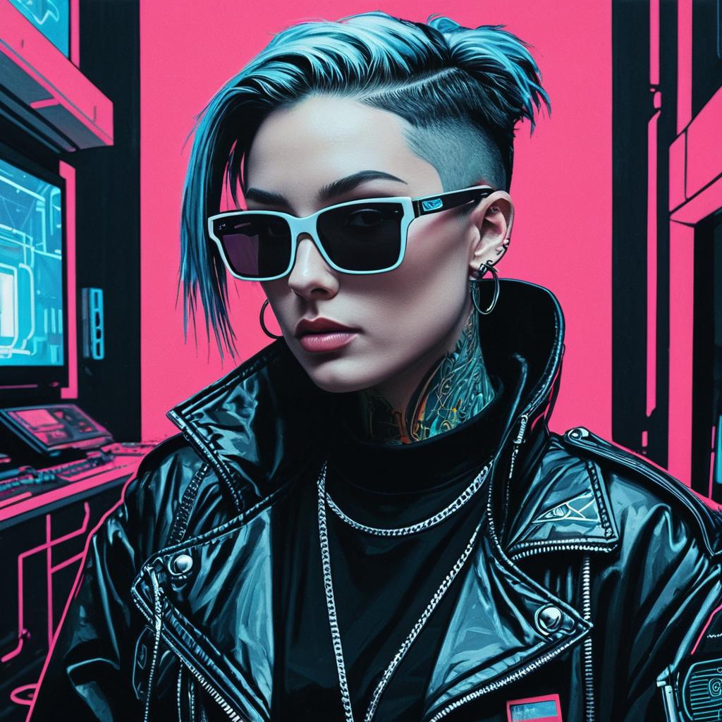 Non-Binary Cyborg Dancer in Cyberpunk Cityscape