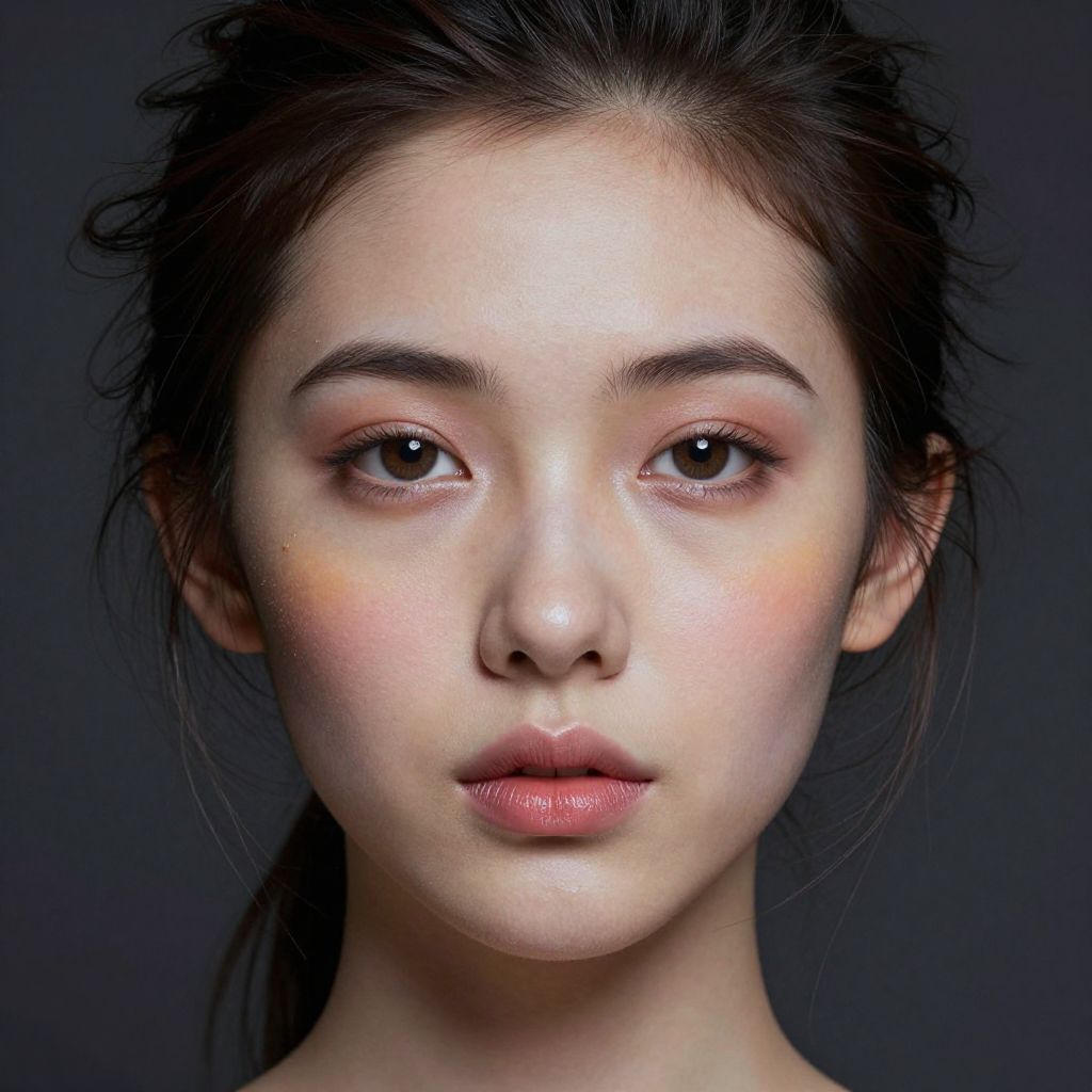 Messy hair reference, portrait of a young woman with tousled, windblown hair, natural light highlighting the texture, soft pastel background, detailed strands and volume, artistic style blending realism and impressionism, subtle freckles on skin