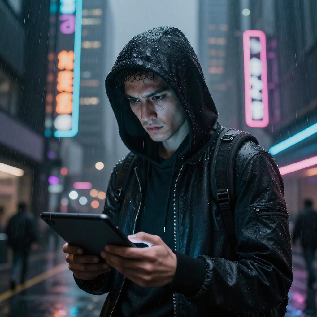 Cyberpunk Hacker in Neon Rain