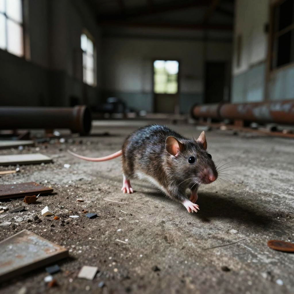 Rat Escaping Abandoned Industrial Warehouse