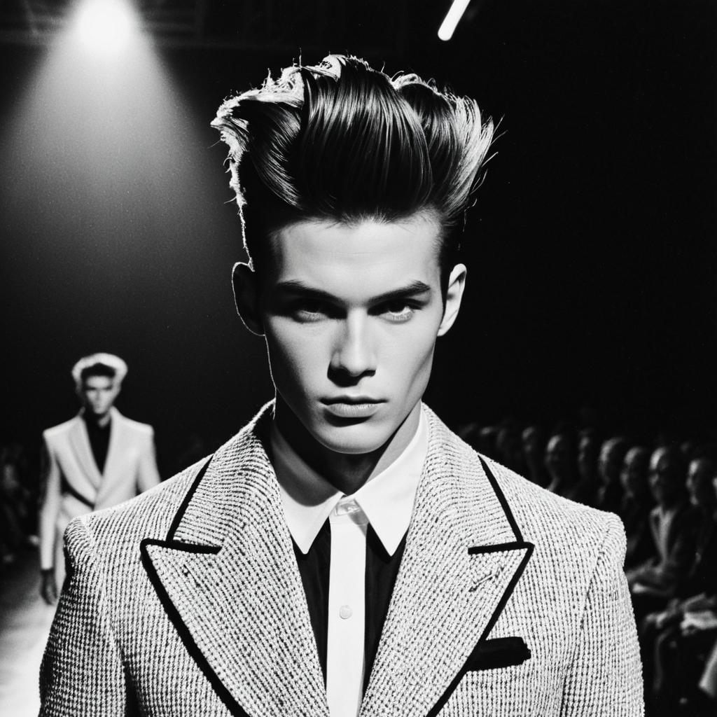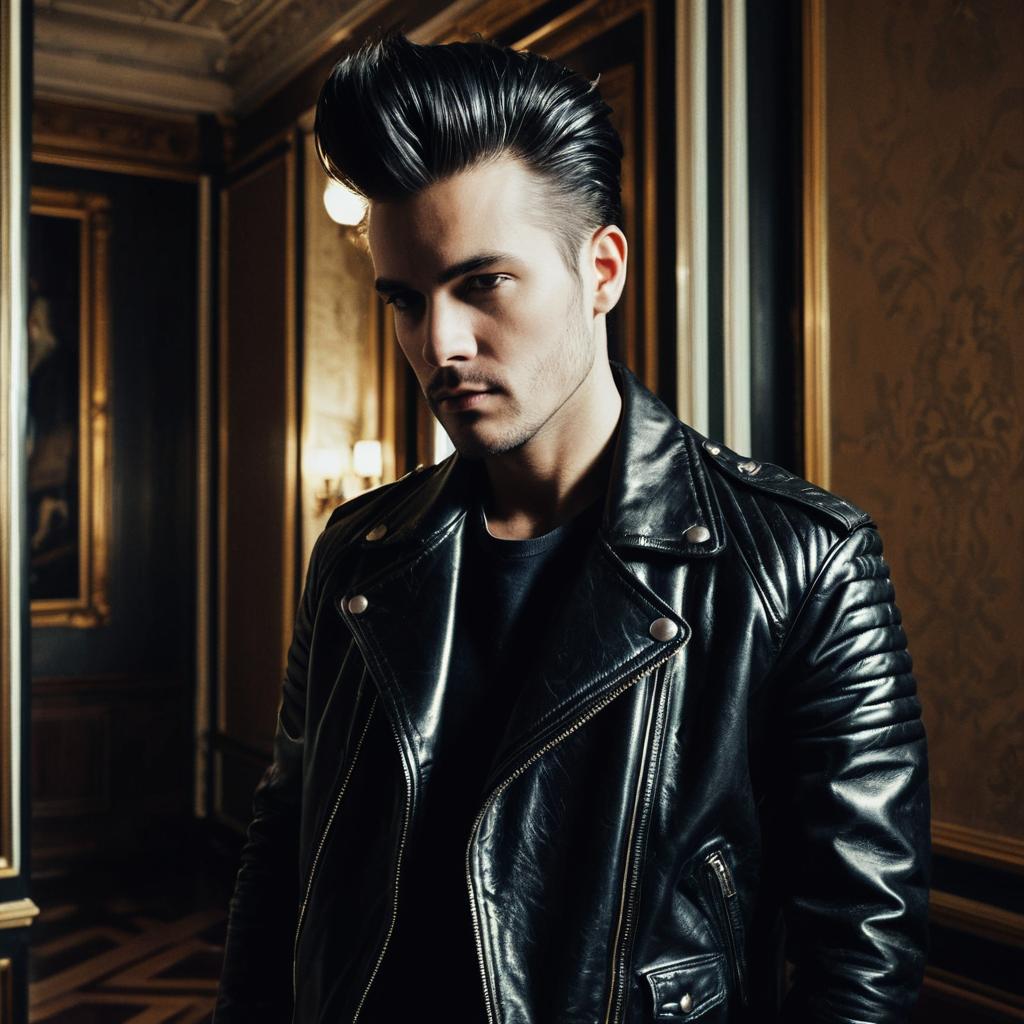Fashion Model with Pompadour Hairstyle in Luxury Hall