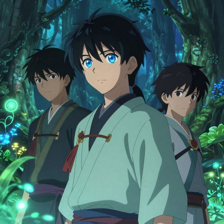 Anime Males in Mystical Bioluminescent Forest