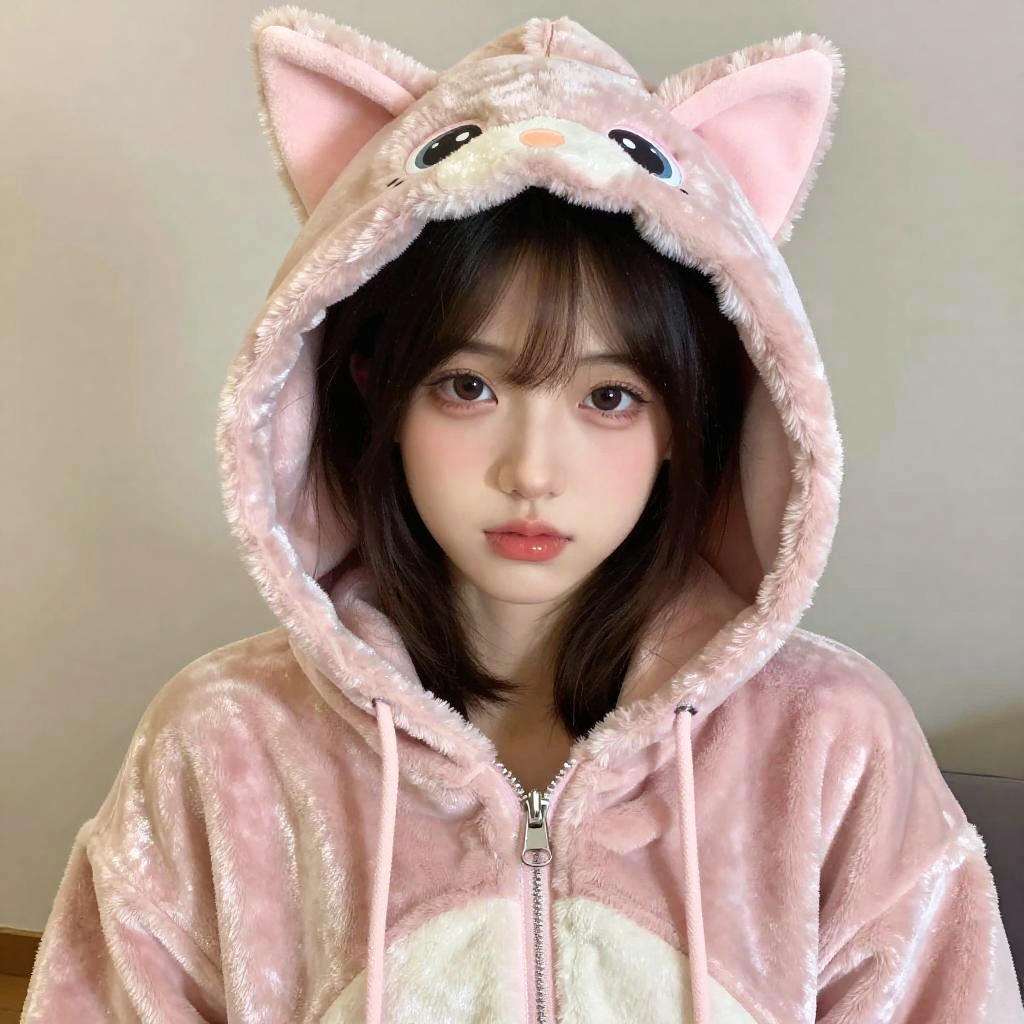 (masterpiece, best quality, realistic, detailed, crisp:1.2), (girl with cat hoodie), soft velvet, gleaming, scifi, soft soothing glow, pastel colors, kawaii, cute colors