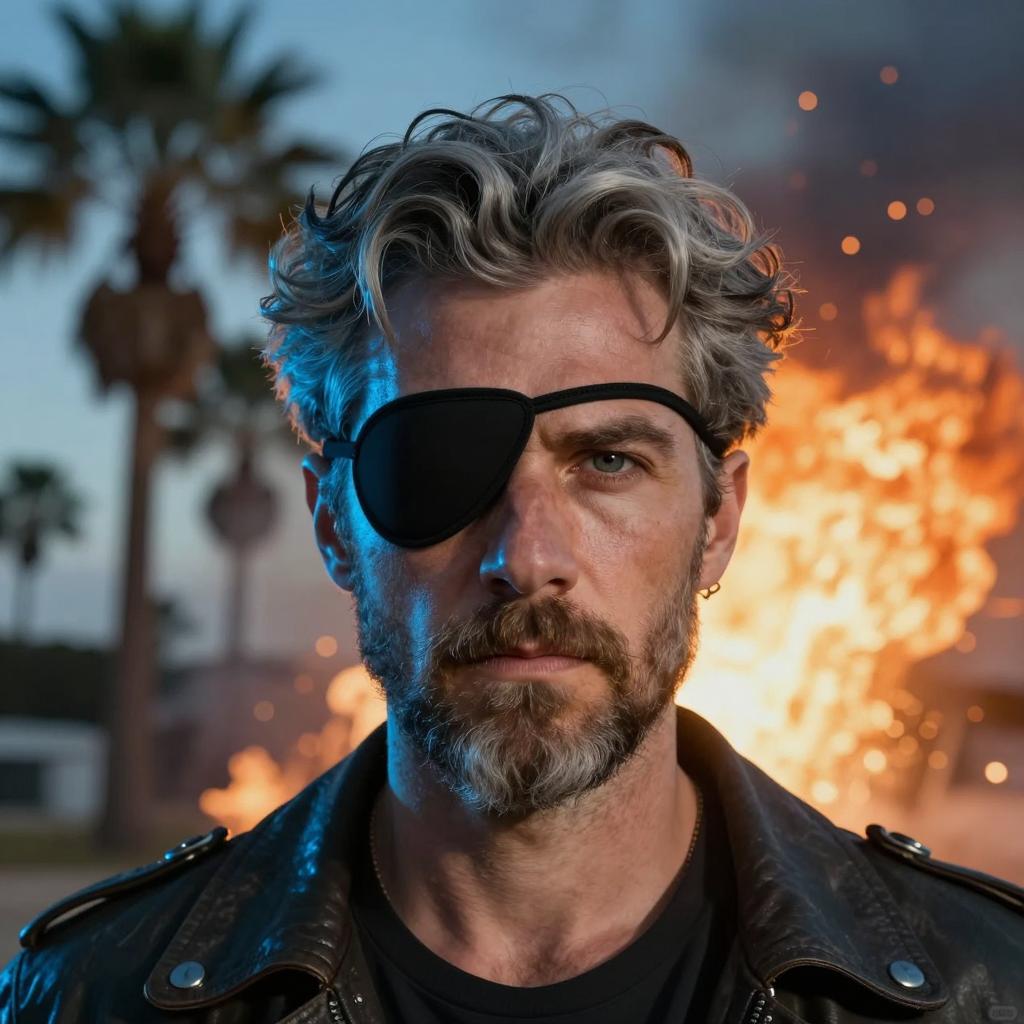 Smiling Man with Eyepatch and Beard