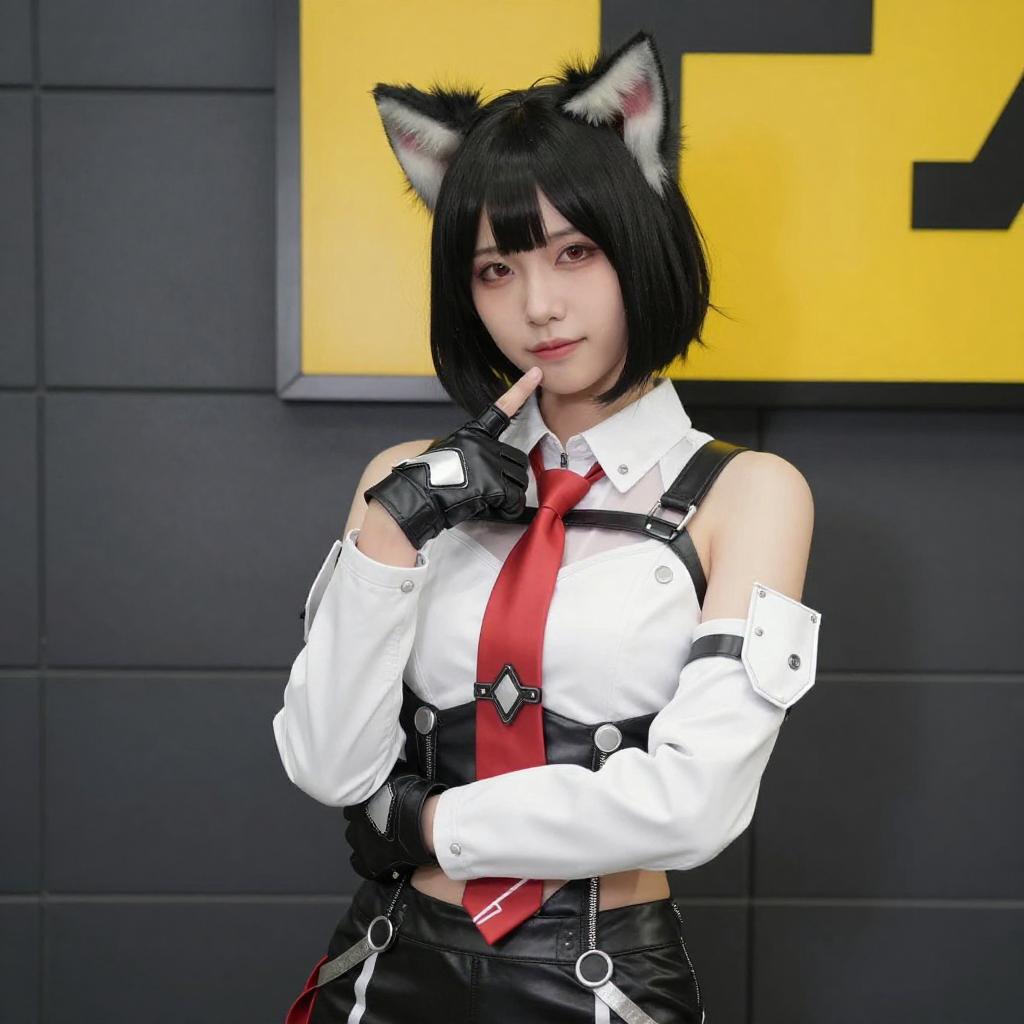 Confident Asian Woman in Cat Ear Cosplay
