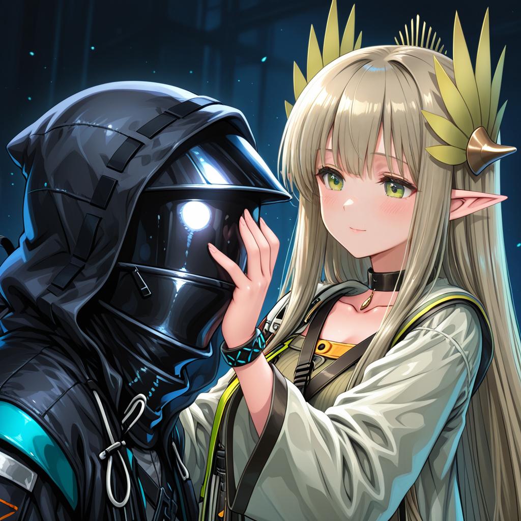 Illustration of Muelsyse (arknights), arknights in the style of Tenjou ryuka