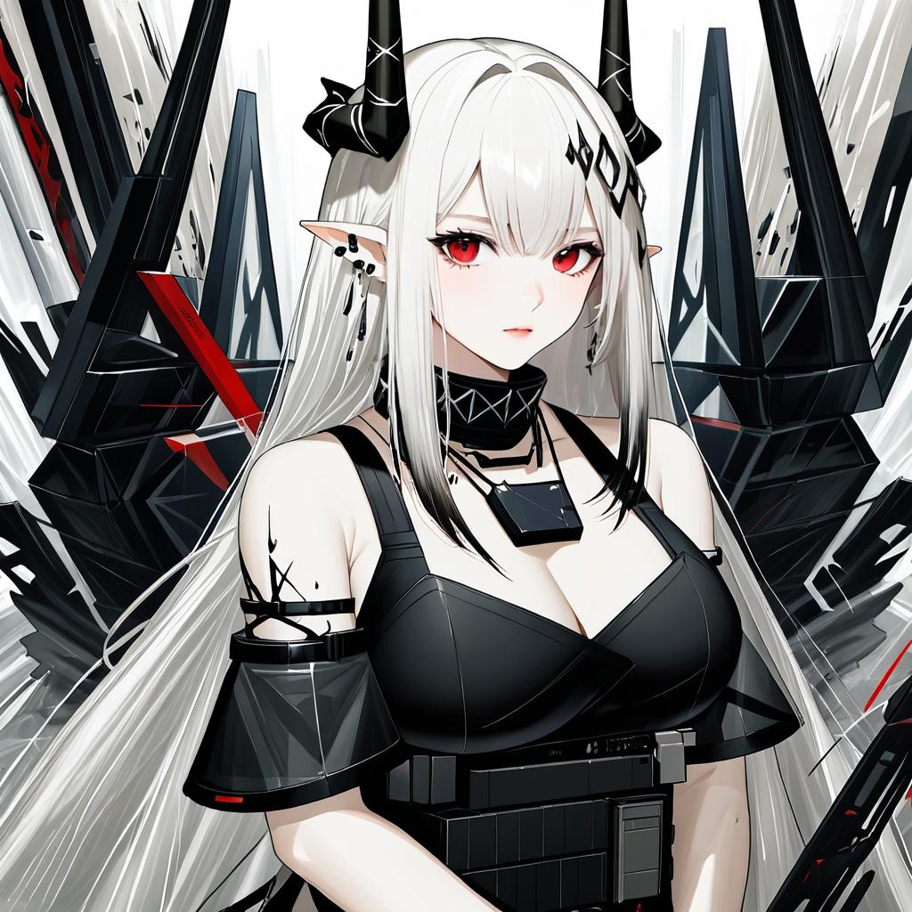 Muelsyse (arknights), arknights, 1girl, pointy ears, yellow eyes, mole under eye, very long hair, brown hair, long hair, long sleeves, black choker, elf, by artist tenjou ryuka, anime