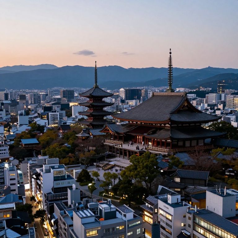 Twilight Cityscape Blending Tradition and Tech