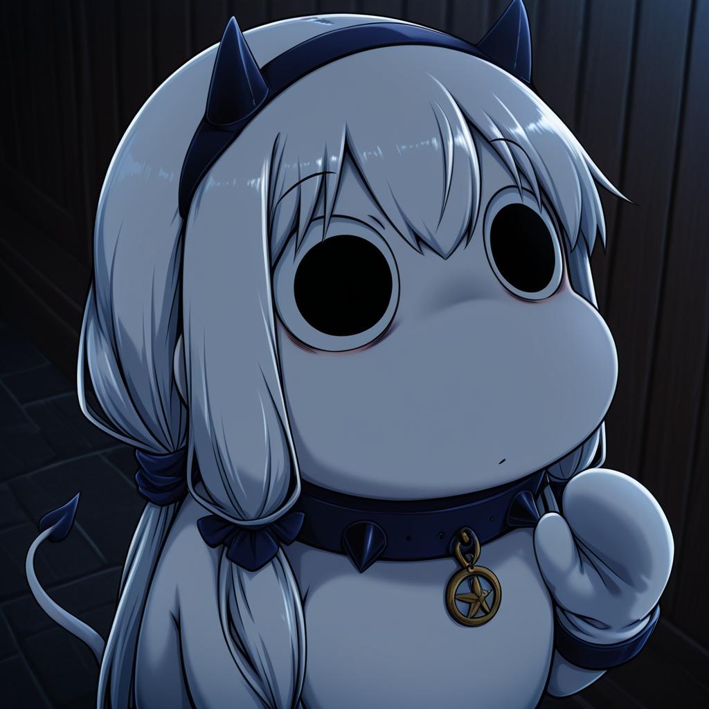 Muppo, kantai collection, 1girl, horns, tail, hair between eyes, solid circle pupils, long hair, sidelocks, collar, mittens, by artist kobamiso (kobalt), dark_illustrious