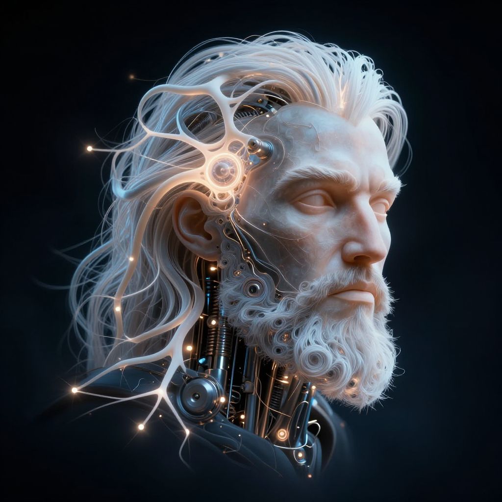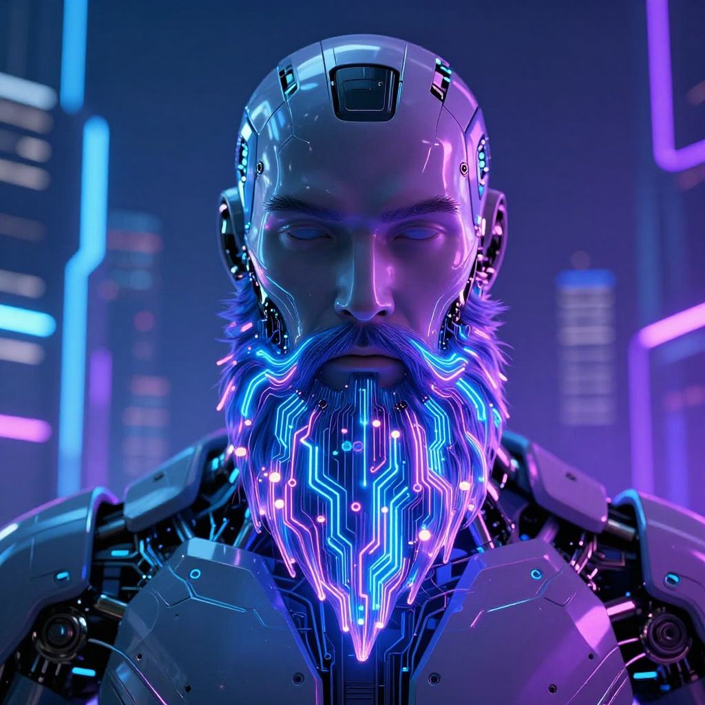Futuristic Cyberpunk Robot with Neon Beard