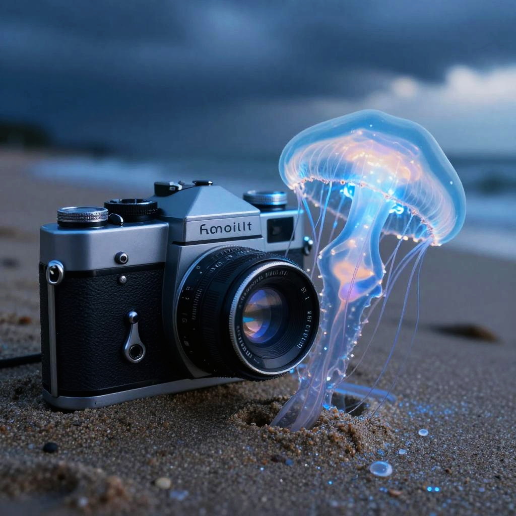 Extreme close-up of a mythical phoenix with vibrant orange, yellow, and blue feathers, set against a twilight sky in a magical forest. The image features ultra-detailed feathers, dramatic natural light and shadow interplay, creating a cinematic and hyper-realistic portrayal of the legendary creature.