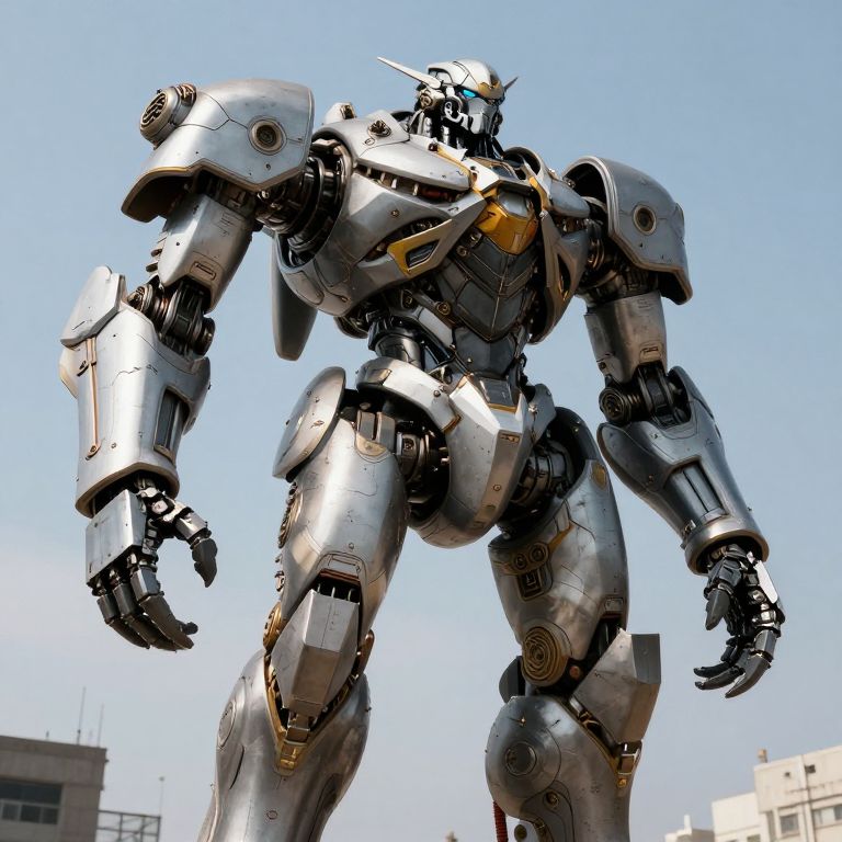 A towering, biomechanical behemoth stands as a fusion of industrial might and otherworldly design, its segmented limbs and clawed appendages hinting at a power that defies conventional engineering.