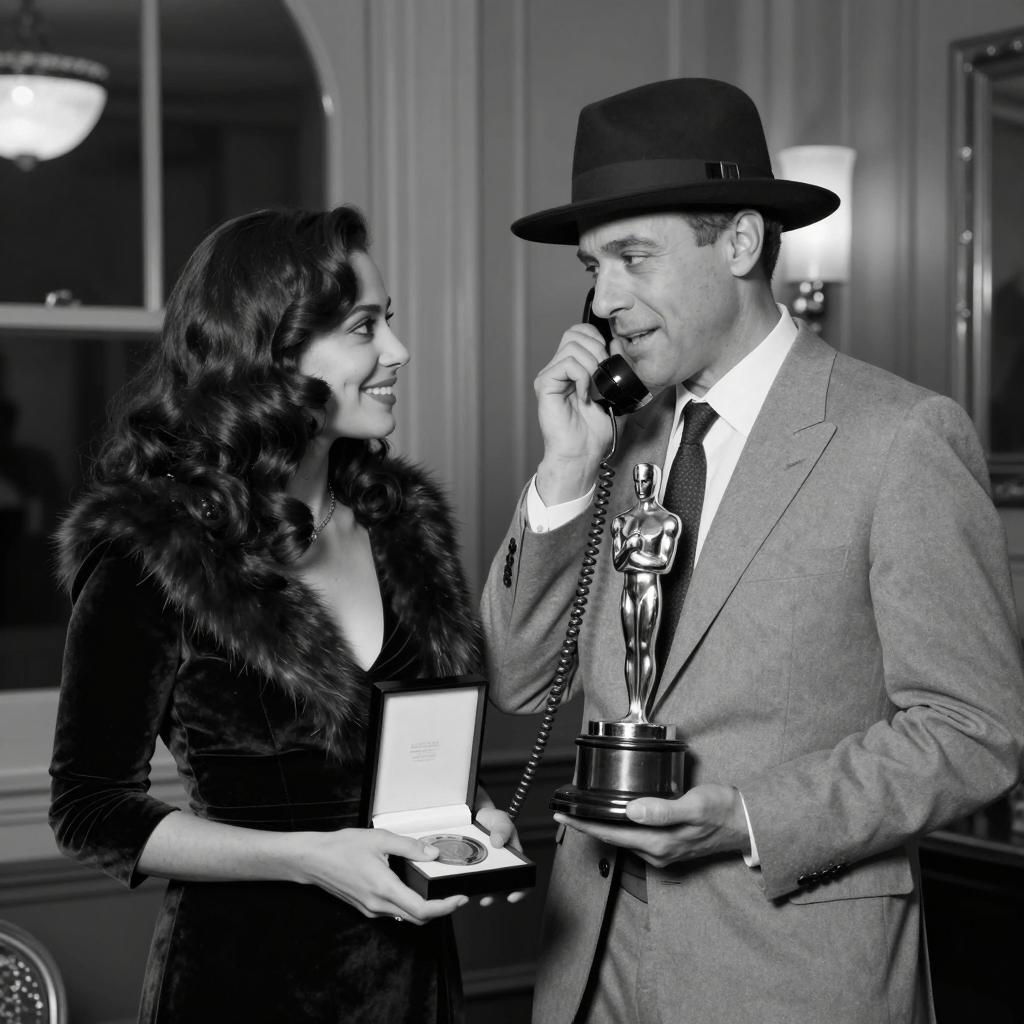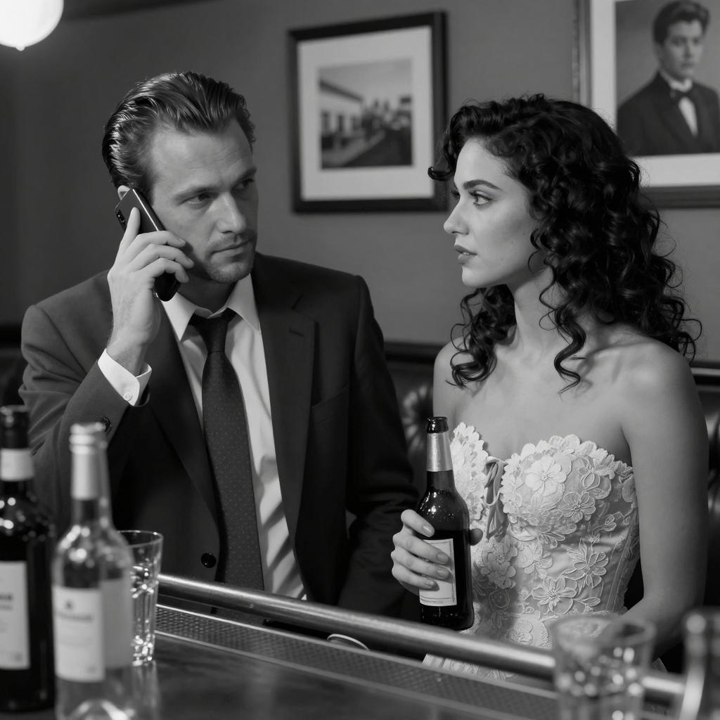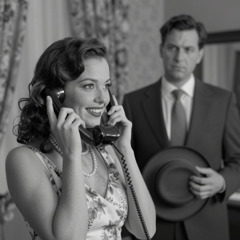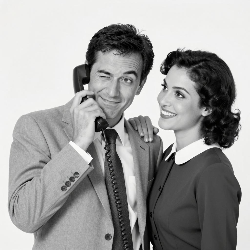 Vintage Style Couple on Telephone Call
