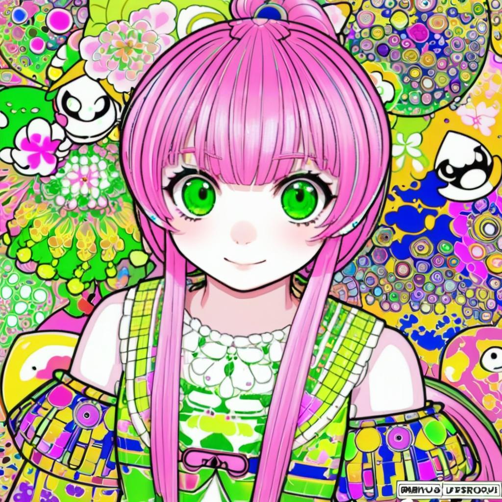 Hana (pangya), pangya, 1girl, green eyes, pink hair, long hair, ponytail, by artist krekkov, anime