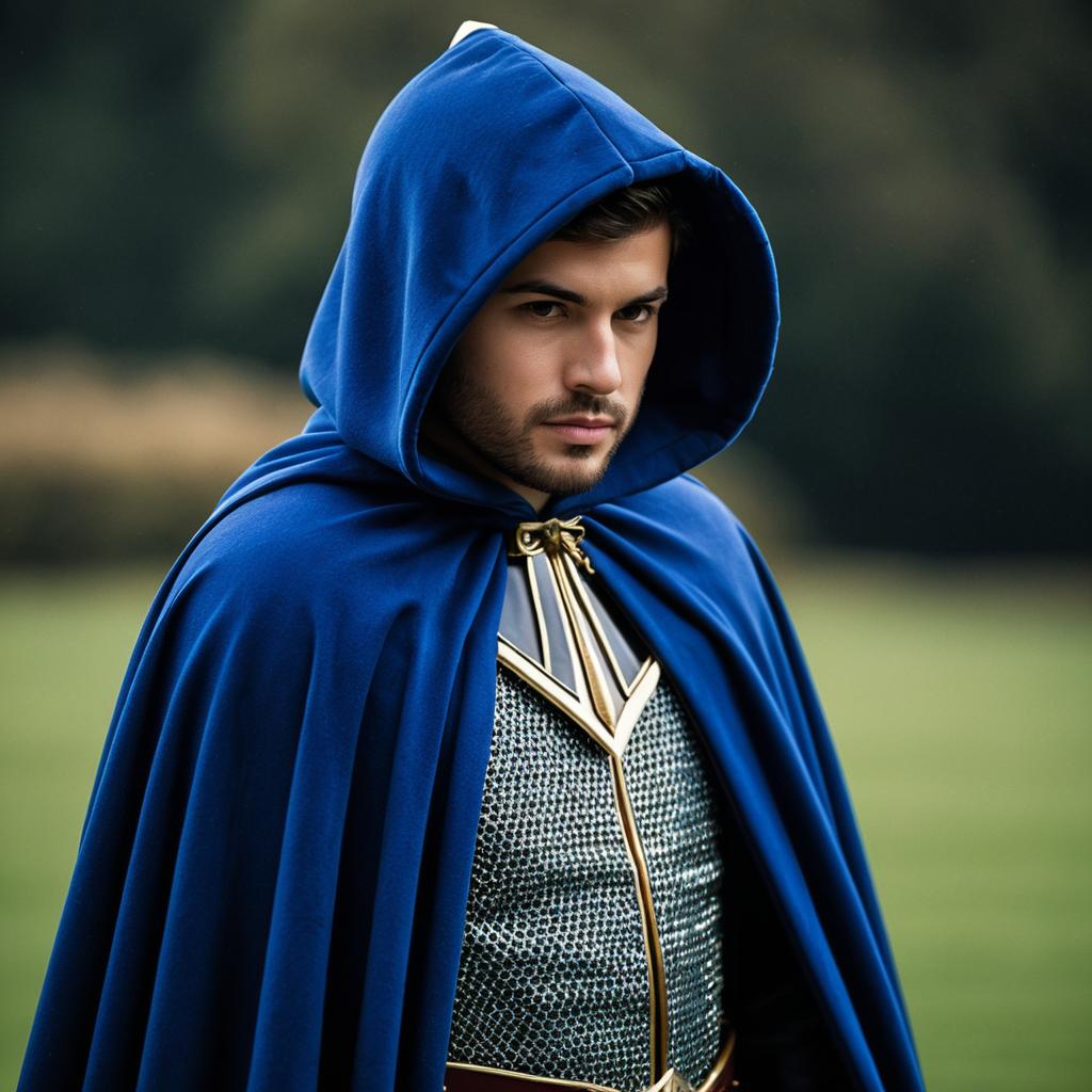 Snow white prince outfit,1boy, male focus, solo, snow, belt, cape, long sleeves, looking at viewer, facial hair, pants, brown hair, standing, realistic, white pants, tree, white cape, closed mouth