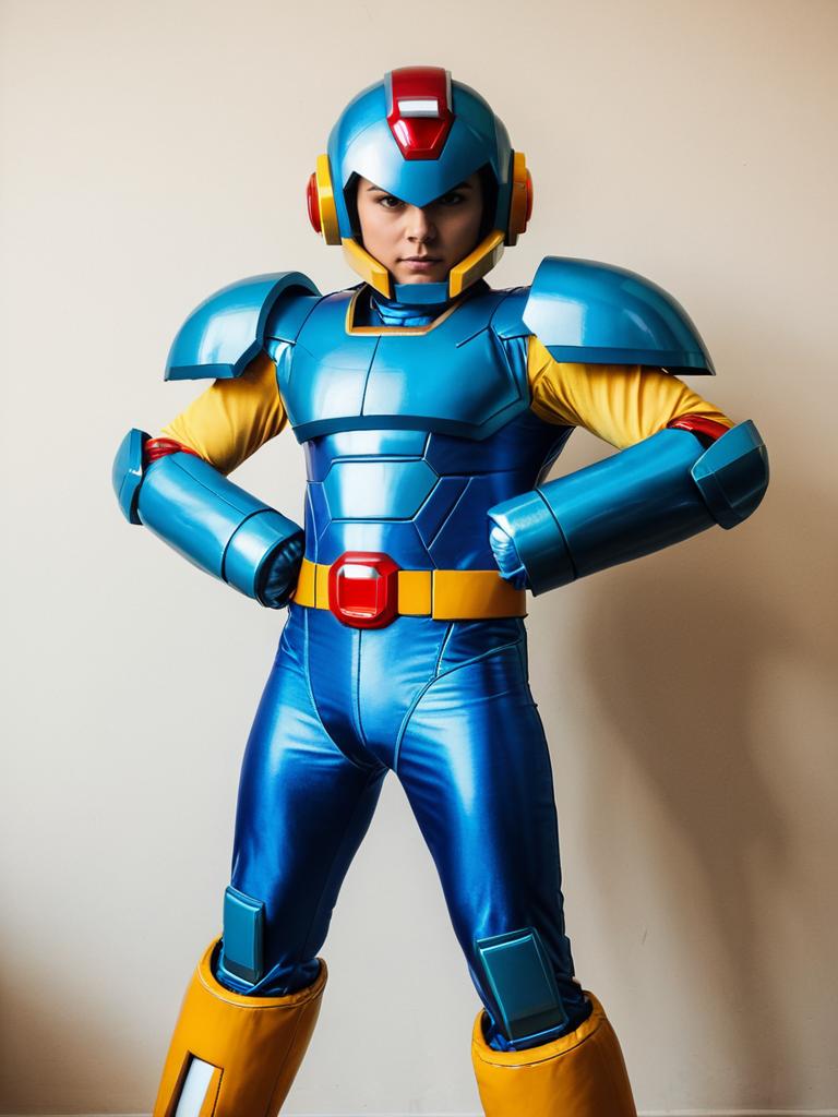 Man cosplay. Wearing Zero (Mega Man X era) costume. Realistic photo. Dressed as Zero (Mega Man X era) --sref 1400